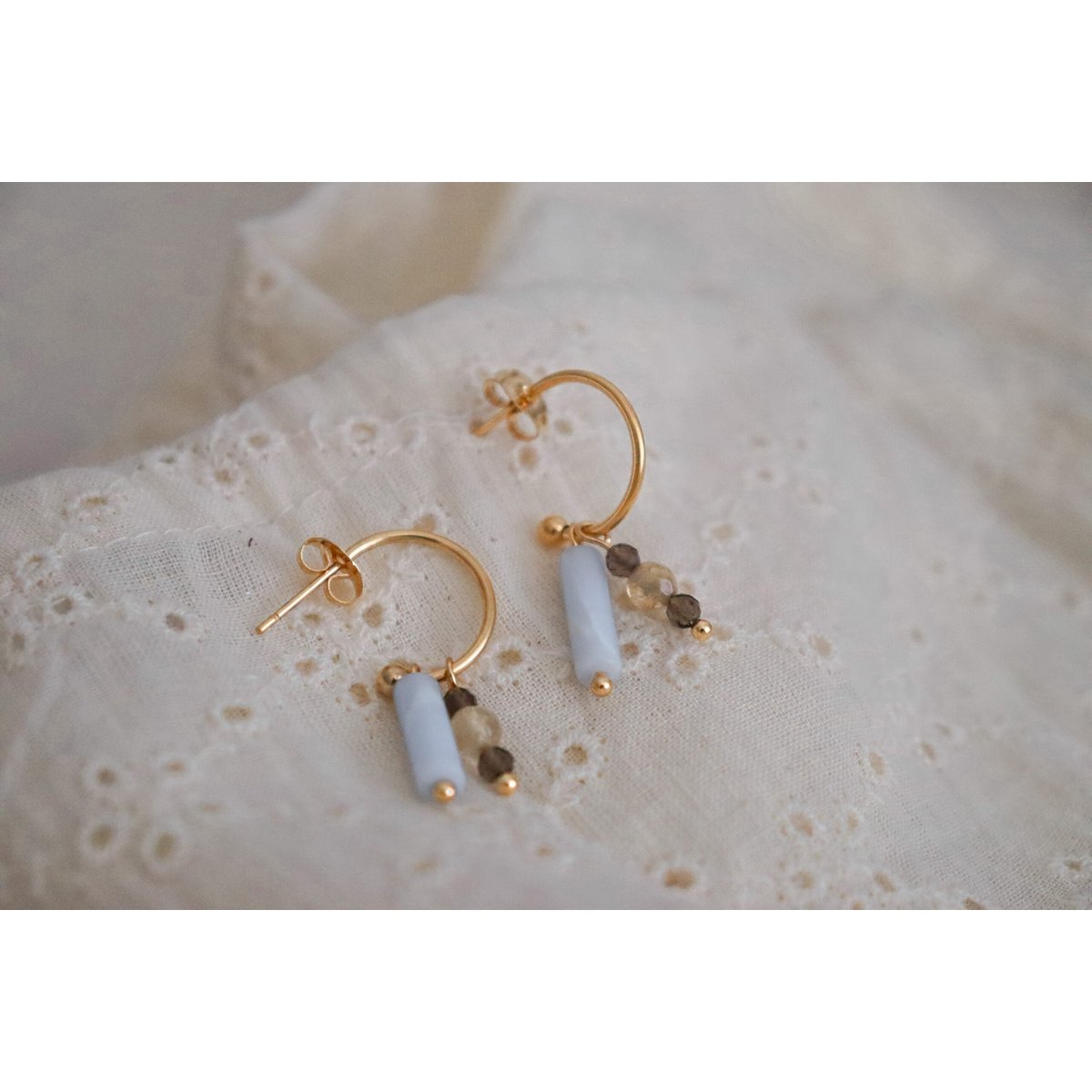 Aquamarijn, Rookkwarts & Citrien oorringen, gemaakt van stainless steel. De Citrien en Rookkwarts steentjes zijn facet geslepen en schitteren mooi.