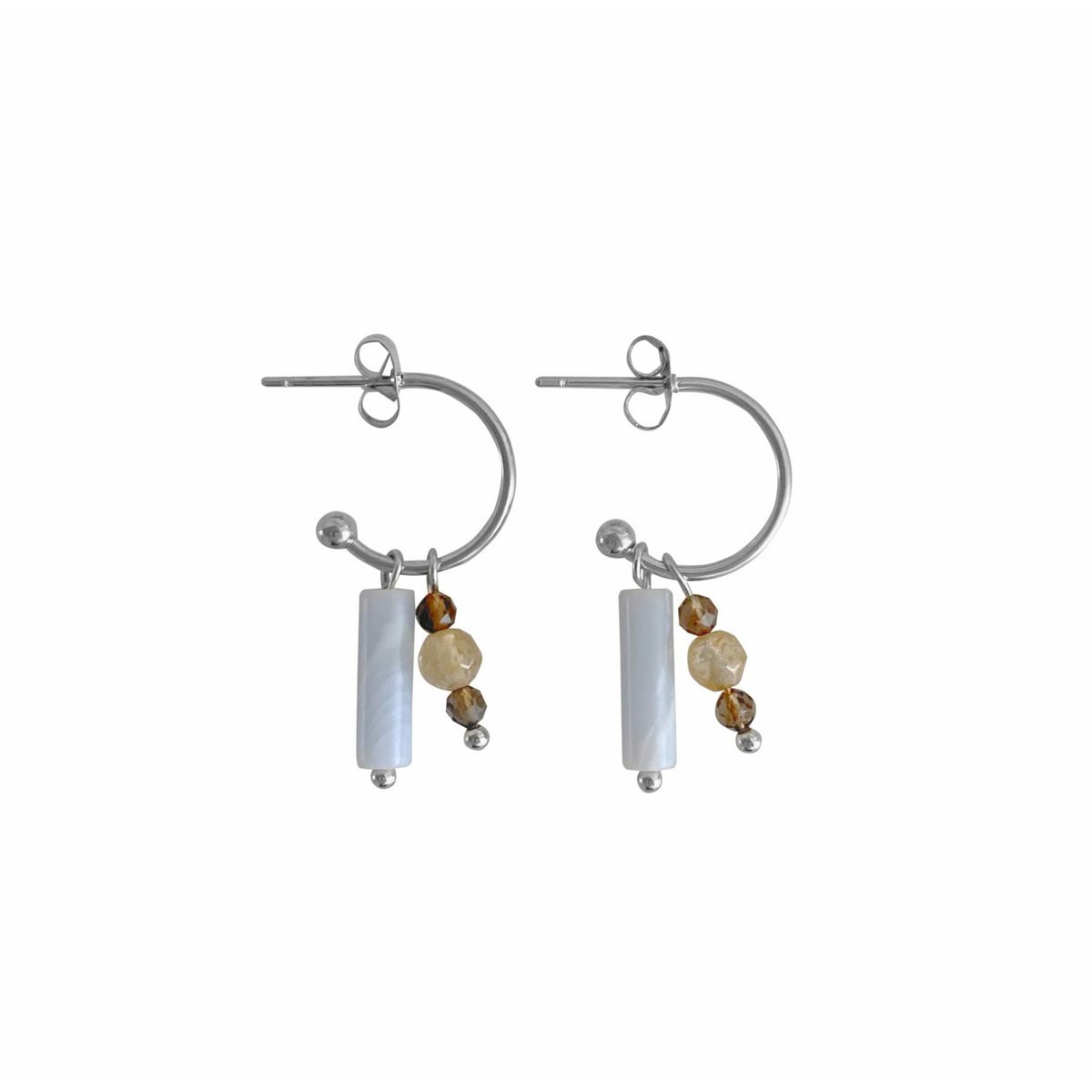 Aquamarijn, Rookkwarts & Citrien Oorringen - Zilver