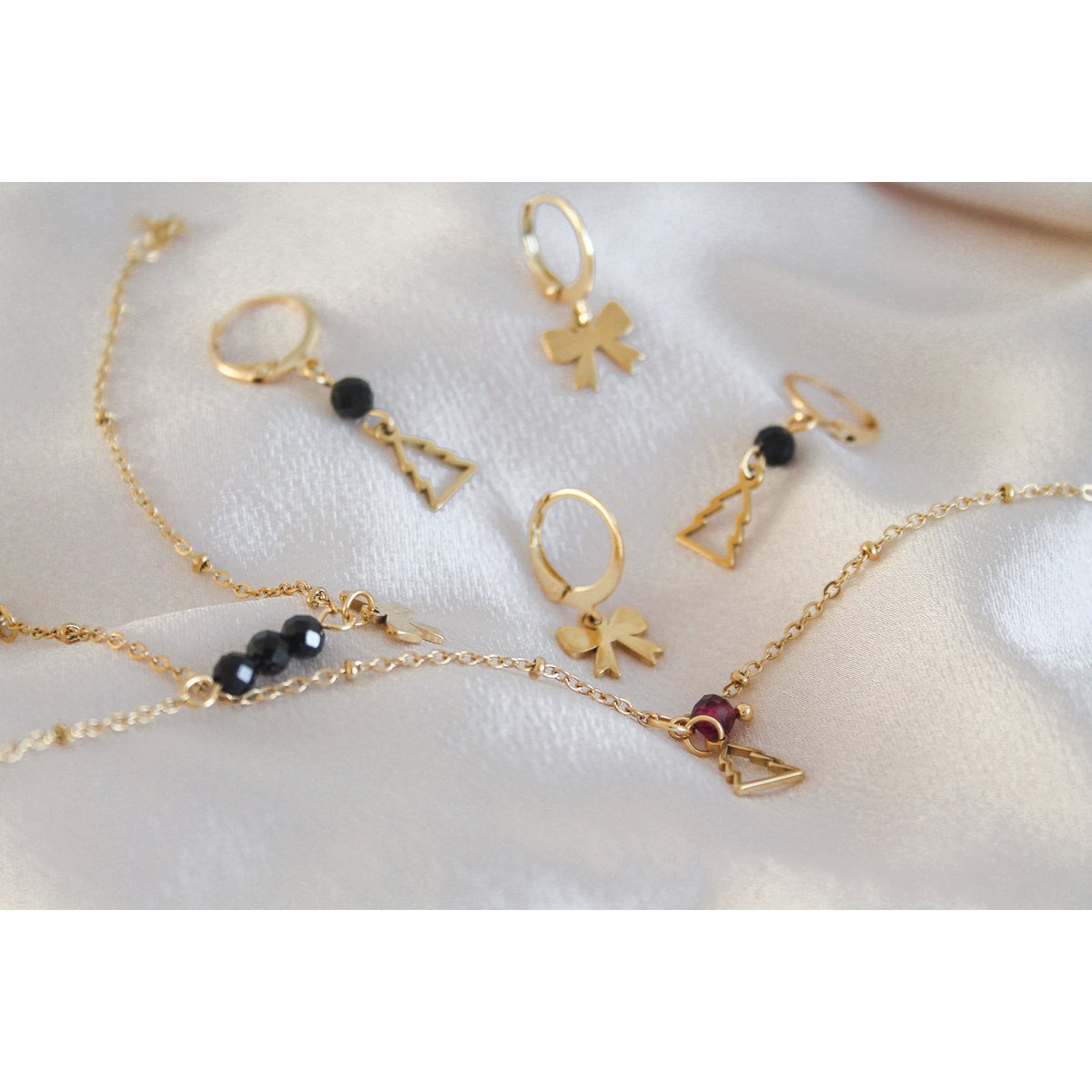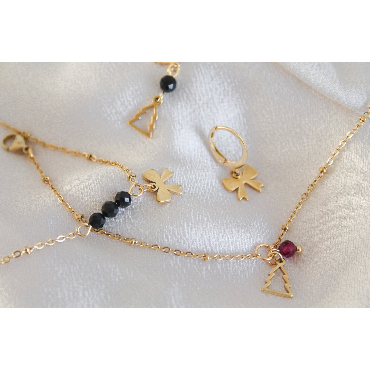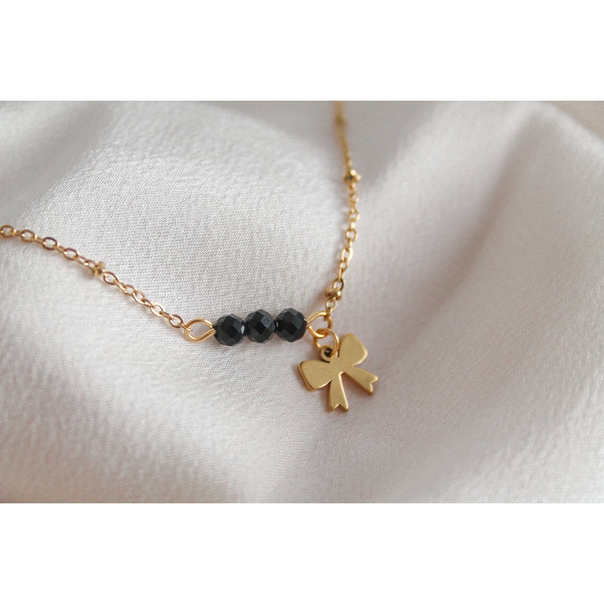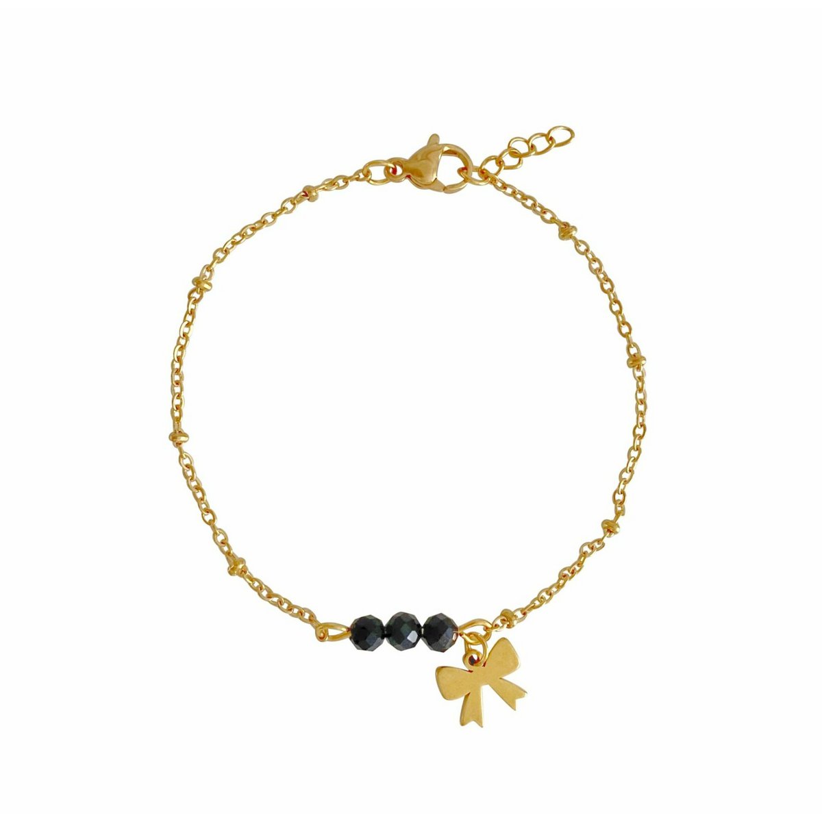Stainless steel armbandje met drie Zwarte Toermalijn steentjes en een schattig strikje. De Toermalijn steentjes zijn facet geslepen en schitteren mooi.
