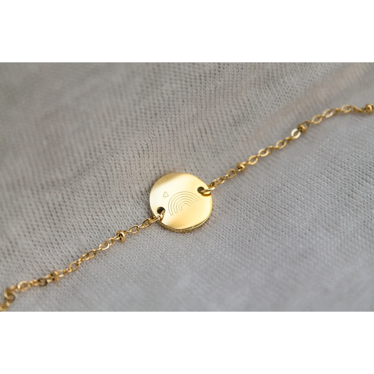 Stainless steel armbandje met een bedeltje waar een regenboog en een klein hartje op gegraveerd is. Een regenboogbaby is het eerstgeboren kindje na het verlies van een kindje of na een zware of tragische periode voor de ouders. Een gezond geboren kindje is een geschenk. Ook al kan een tweede kindje niet de leegte opvullen die is achtergelaten, een pasgeboren baby'tje brengt hoop en liefde. De regenboog die verschijnt na een regenbui. Stainless steel armbandje met een bedeltje waar een regenboog en een klein hartje op gegraveerd is. Een regenboogbaby is het eerstgeboren kindje na het verlies van een kindje of na een zware of tragische periode voor de ouders. Een gezond geboren kindje is een geschenk. Ook al kan een tweede kindje niet de leegte opvullen die is achtergelaten, een pasgeboren baby’tje brengt hoop en liefde. De regenboog die verschijnt na een regenbui.