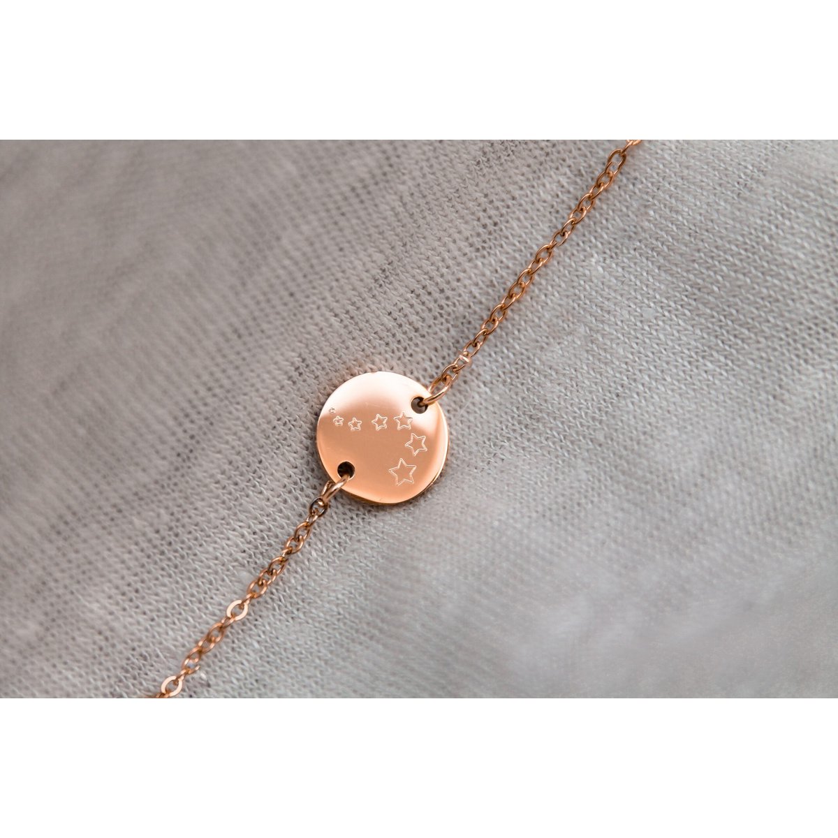 Stainless steel armbandje met een bedeltje waar kleine sterretjes op gegraveerd zijn. Een troostgeschenk, voor wanneer woorden te kort schieten. Grootte bedel: 1.2 cm Lengte armbandje: 17.5 cm + extra lengte