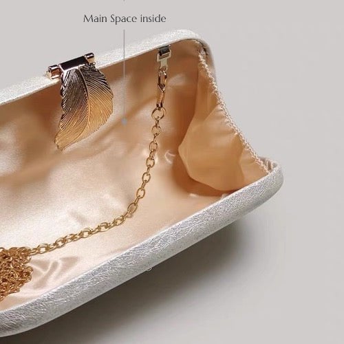 Kies tussen klassiek wit of tijdloos zwart, passend bij jouw stijl, en ervaar de unieke allure van de vintage-geïnspireerde boomhuidtextuur. Het middelpunt van deze clutch is de gevormde bladgoudgesp, vervaardigd om een levendig vleugje weelde toe te voegen. De clutch meet een compacte 20x11x4cm. Een halfrond hardmetalen handvat zorgt voor een comfortabele grip, met een lange, slanke metalen band. Geniet van tijdloze verfijning met onze Tree Skin Texture Wedding Clutch, waarbij de vintage charme en het moderne ontwerp een accessoire creëren dat opvalt op een bruidsfeest of elke speciale gelegenheid.