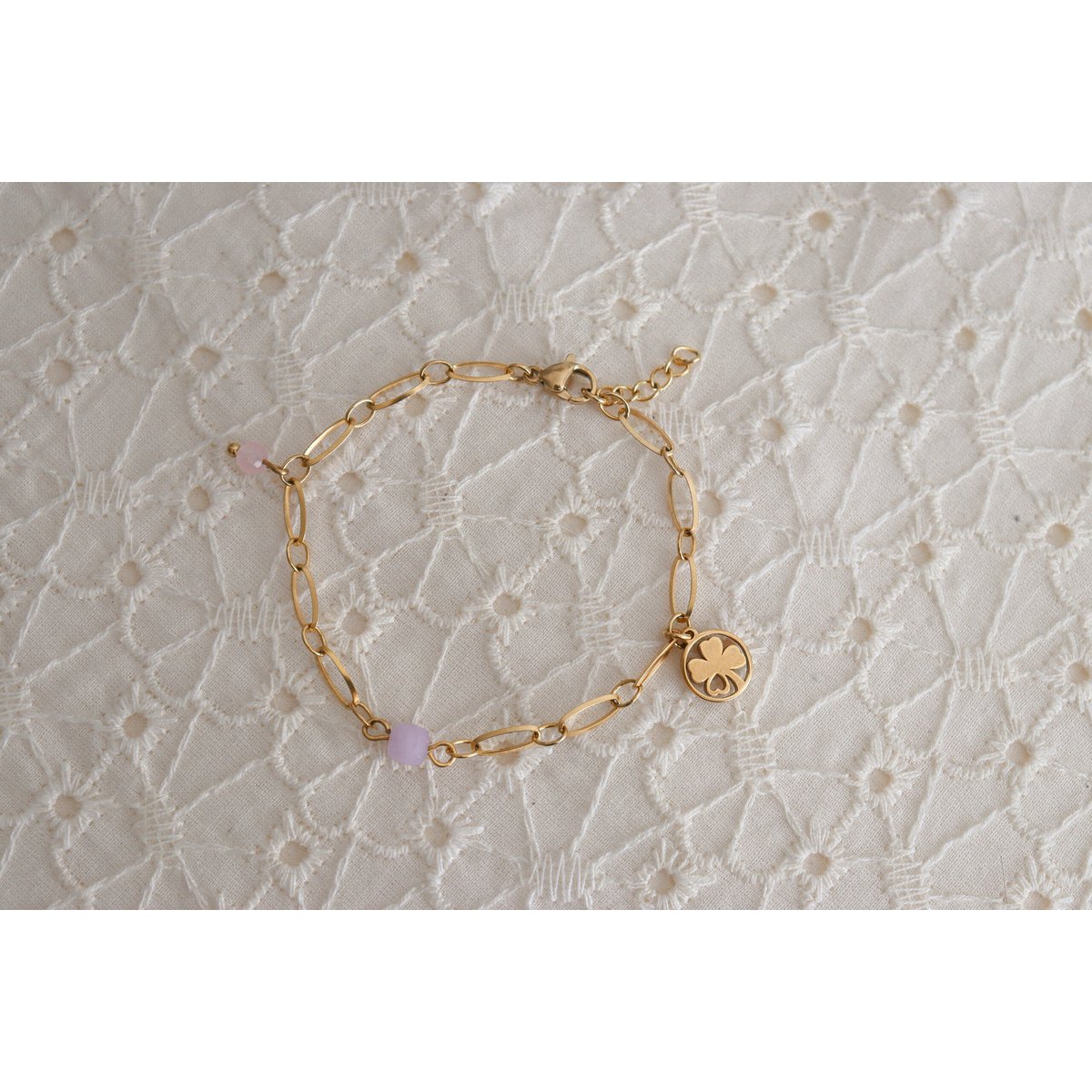 Chalcedoon, Rozenkwarts & Klaver Vier Armband - Goud