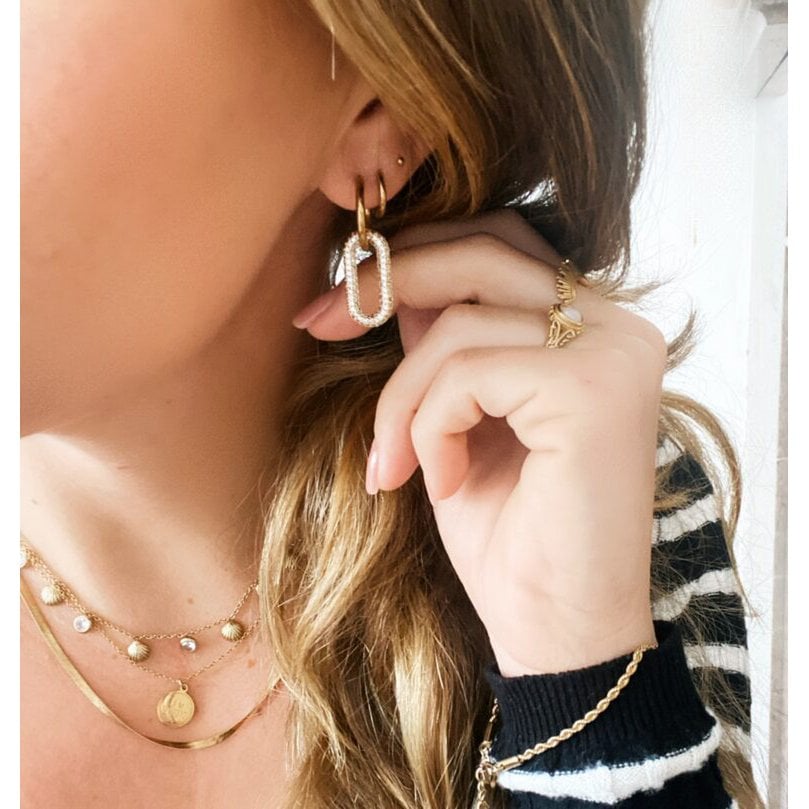 Edelstalen oorbel met ovale kristallen hanger - goud