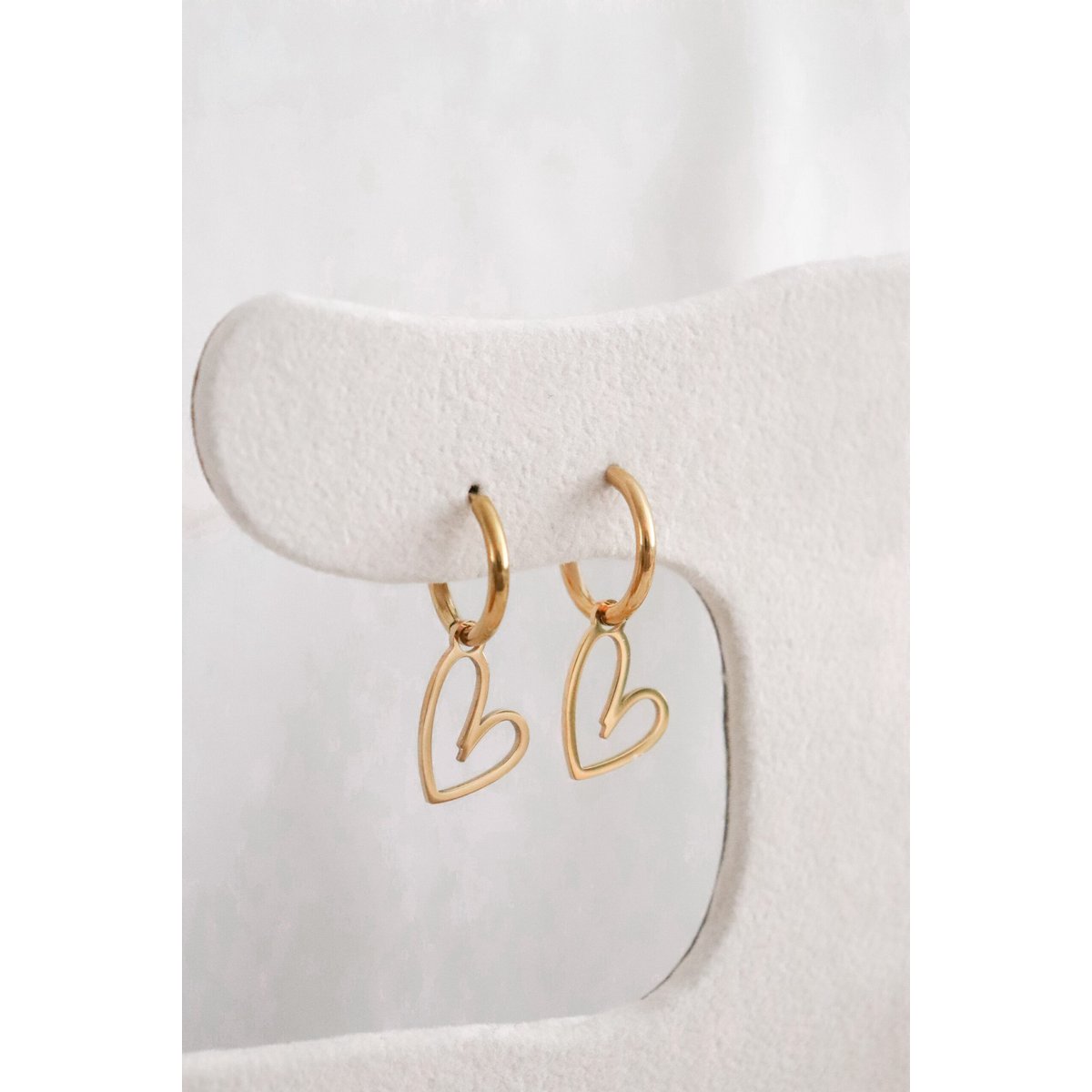 Hartje Oorringen - Goud, gemaakt van stainless steel. De oorringen zijn duurzaam, sterk, kleurvast en hypoallergeen. Gemaakt van hoogwaardig roestvrij staal, bieden deze oorringen duurzaamheid en glans die lang meegaan. Het ontwerp is eenvoudig en verfijnd, met een prachtig hartvormig detail dat een vleugje romantiek toevoegt aan je look.