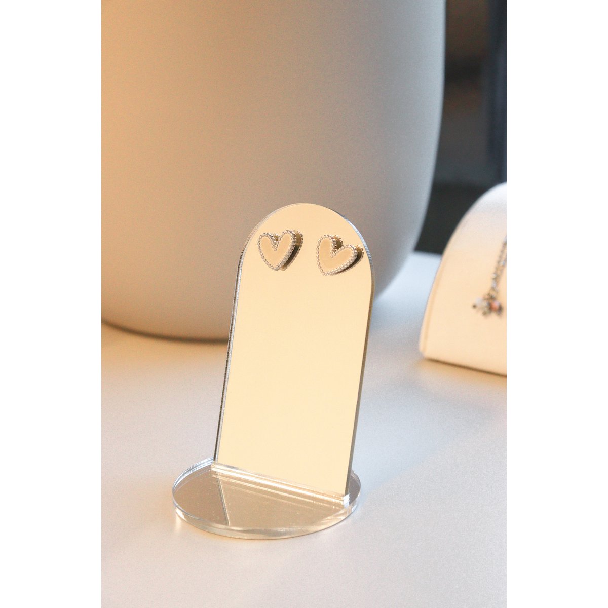 Hartjes Oorknopjes, gemaakt van stainless steel. De oorknopjes zijn van mooie grootte, waardoor ze wel opvallend zijn en ze een chique toevoeging zijn aan je outfit. Om het hartje heen zitten kleine bolletjes, die het oorknopje een extra leuk effect geven. De oorknopjes zijn hypoallergeen en verkleuren niet, waardoor je ze zonder problemen kunt dragen.
