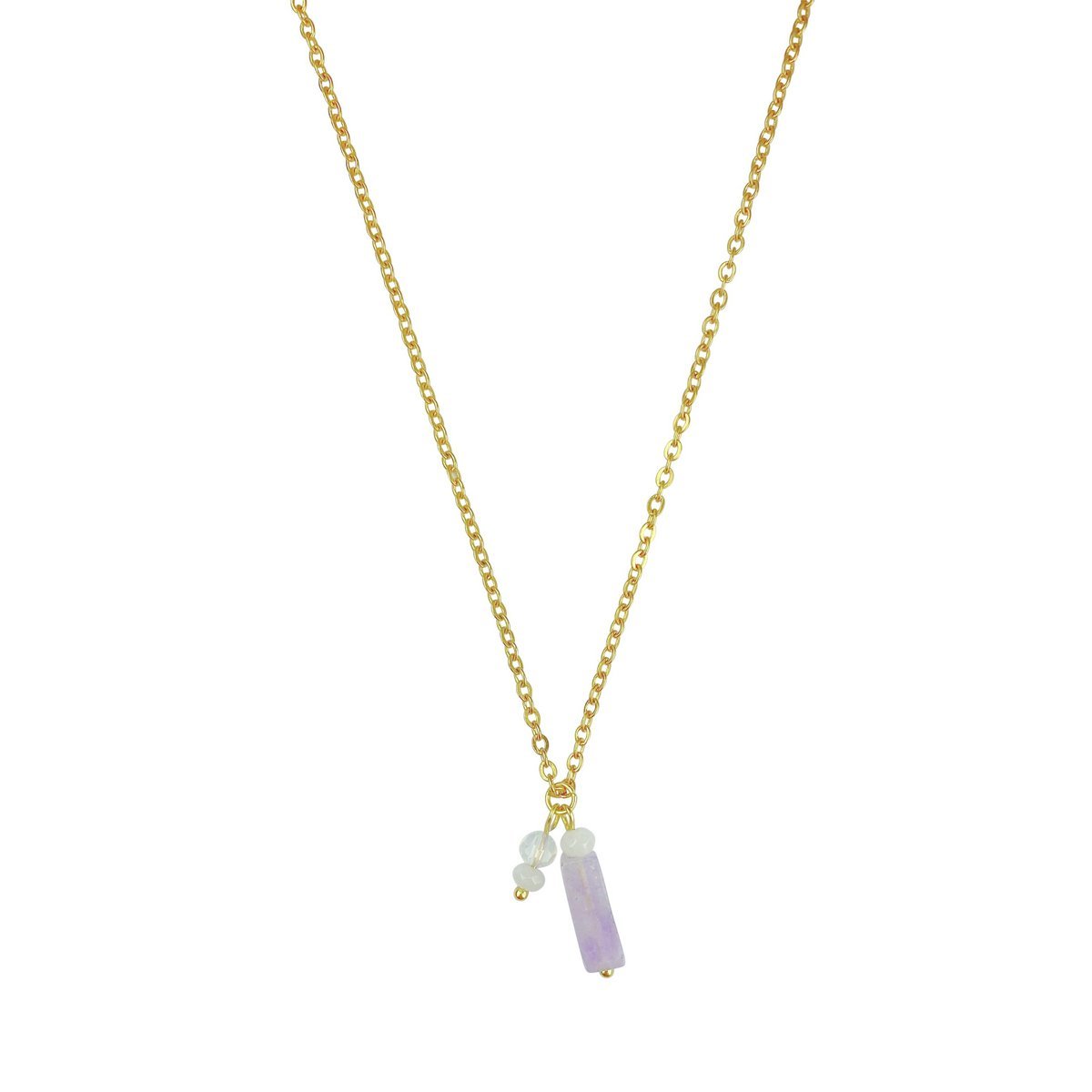 Edelstalen ketting met Amethist, Opaliet en een Jade steentje. De prachtige steen Amethist past precies in de trendkleuren van nu en heeft ook nog eens een mooie werking.