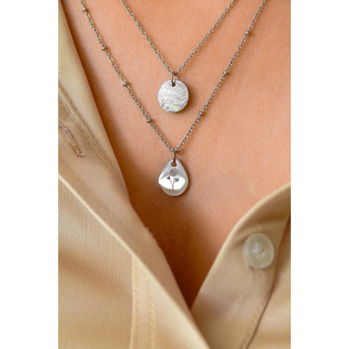 Stainless steel ketting met het woord love "written all over" een stainless steel bedel. De bedel is ontworpen en gegraveerd in ons eigen atelier.