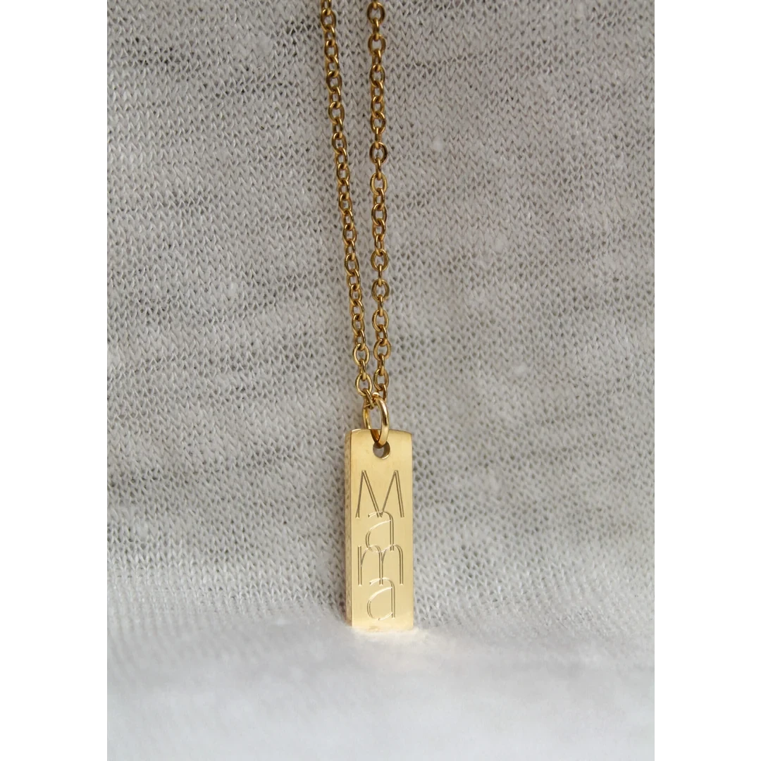 Stainless steel ketting met een plaatje met daarop Mama gegraveerd. De letters lopen iets over elkaar heen, wat het een leuk effect geeft. Een leuk cadeautje voor een nieuwe mama, voor Moederdag of voor jezelf (want alle mama’s zijn power-mama’s die een cadeautje verdienen).