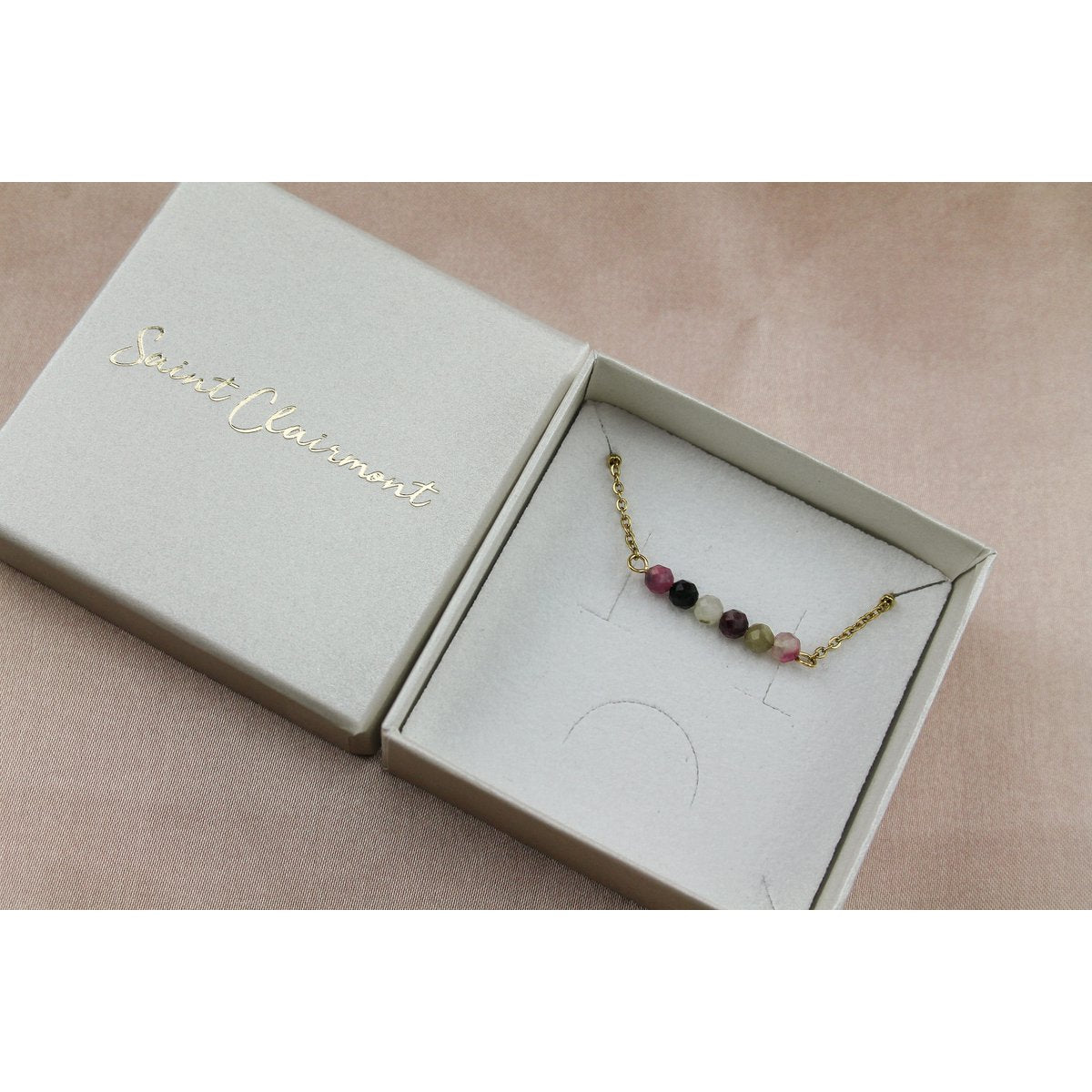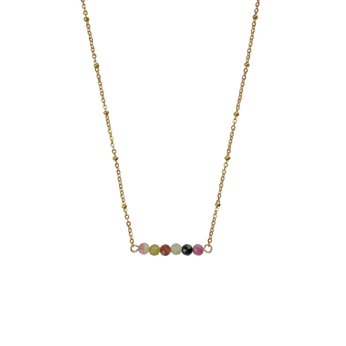Stainless steel ketting met Watermeloen Toermalijn steentjes.