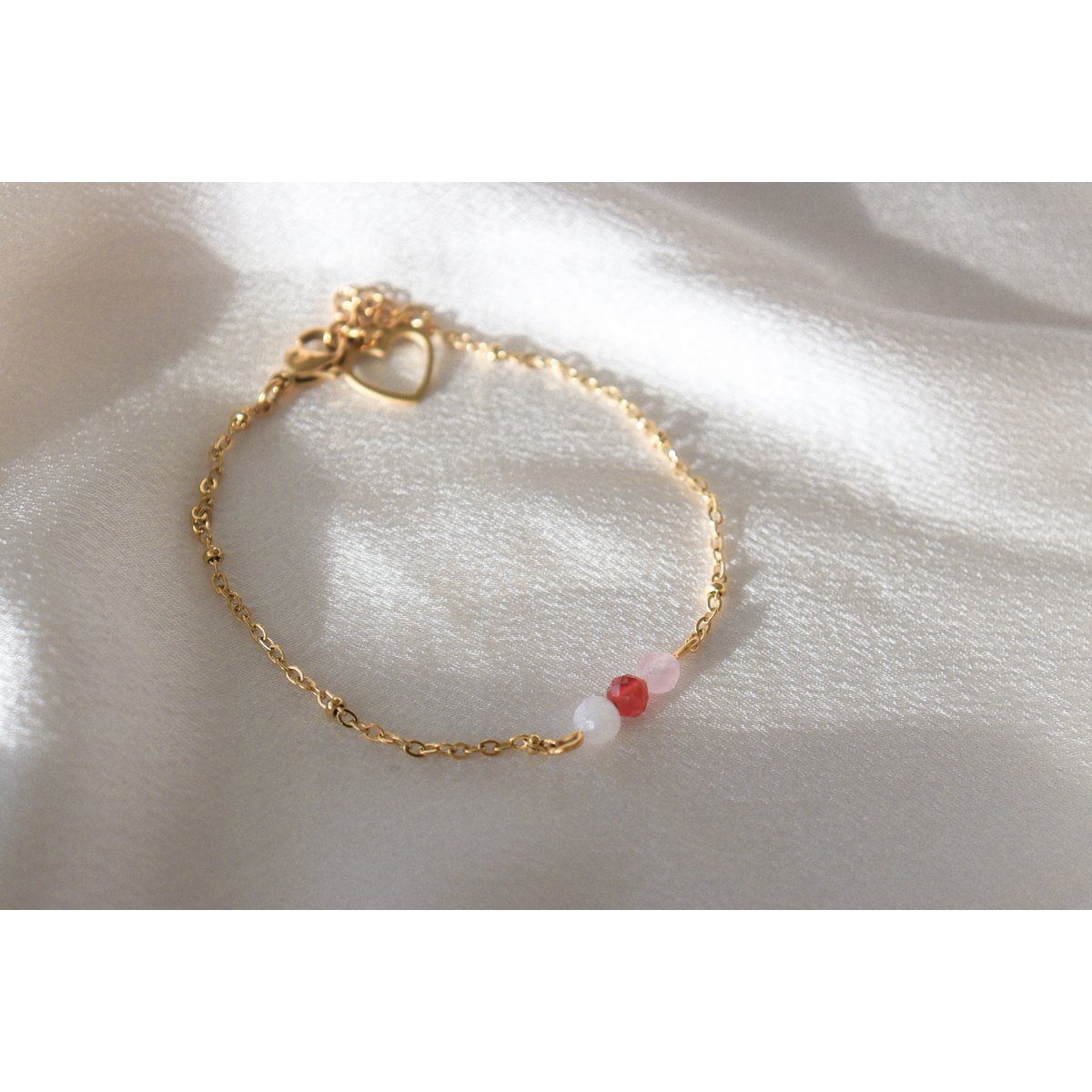 Aan het armbandje hebben we een hartje gemaakt, een extra liefdevol detail. Het staat voor verbinding, hoop en onvoorwaardelijke liefde. Voor jezelf en voor de toekomst die je voor ogen hebt. En laat het je eraan herinneren dat je lief bent voor jezelf.