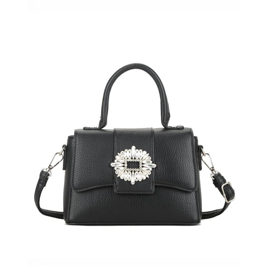 Materiaal : Kunstleer Sluiting : Magneetsluiting Afmeting : 20.5 cm x 15 cm x 8.5 cm Voering : Ja Afwerking : Zilverkleurig metaal Schouderband : Ja, verstelbaar
