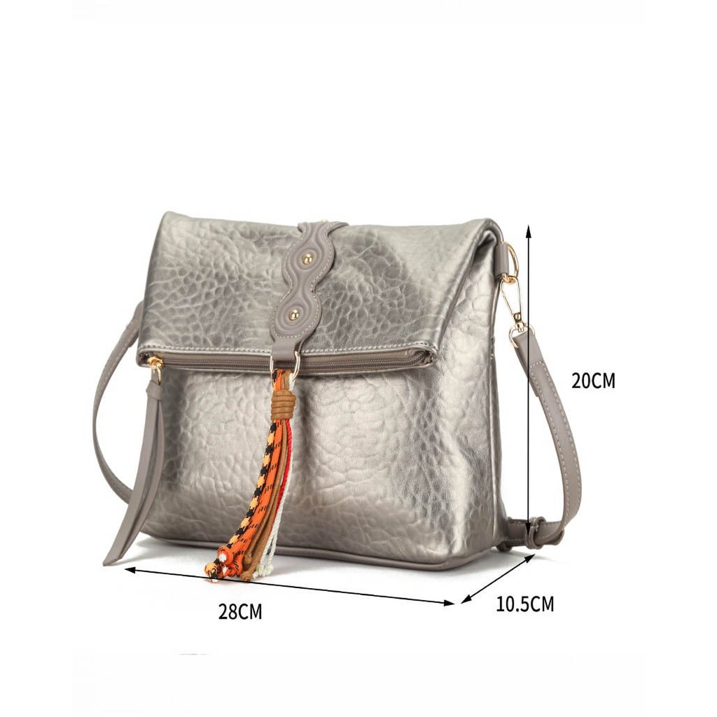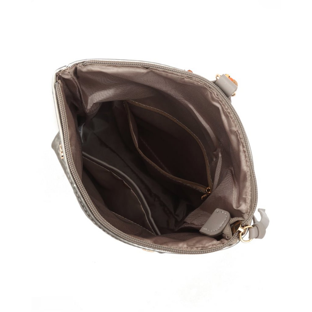 Materiaal : Kunstleer Sluiting : Ritssluiting Afmeting : 28 cm x 20 cm x 10,5 cm Voering : Ja Afwerking : Goudkleurig metaal Schouderband : Ja, verstelbaar en afneembaar
