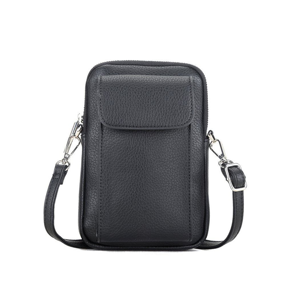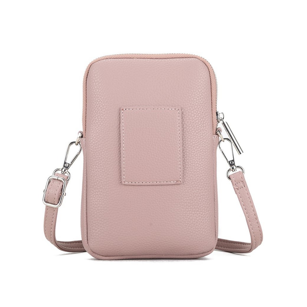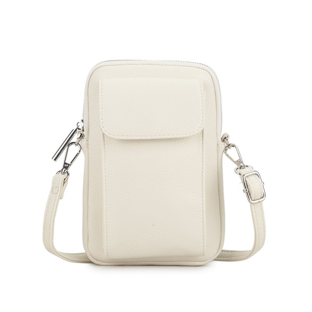 Materiaal : Kunstleer Sluiting : Ritssluiting Afmeting : 13 cm x 21 cm x 2 cm Voering : Ja Afwerking : Zilverkleurig metaal Schouderband : Ja, afneembaar en verstelbaar