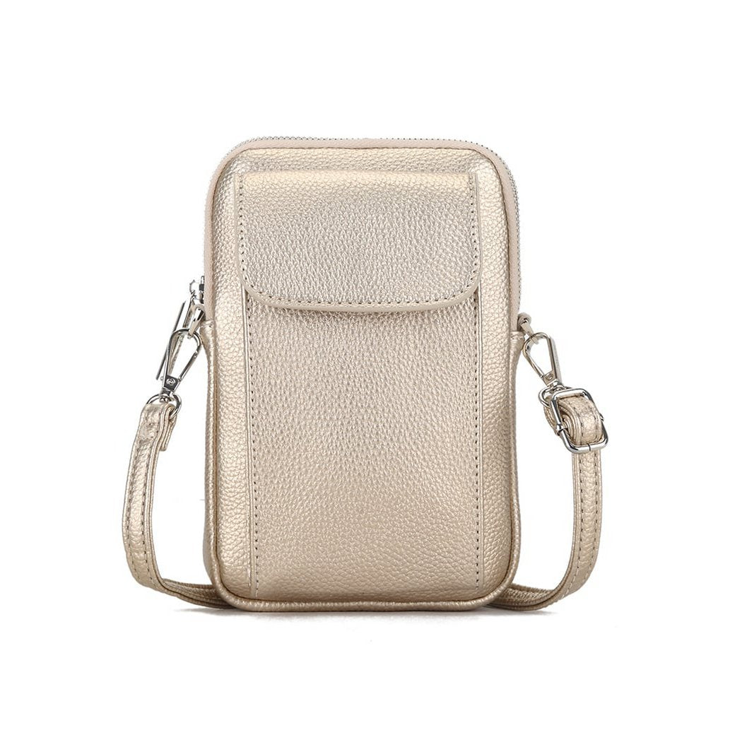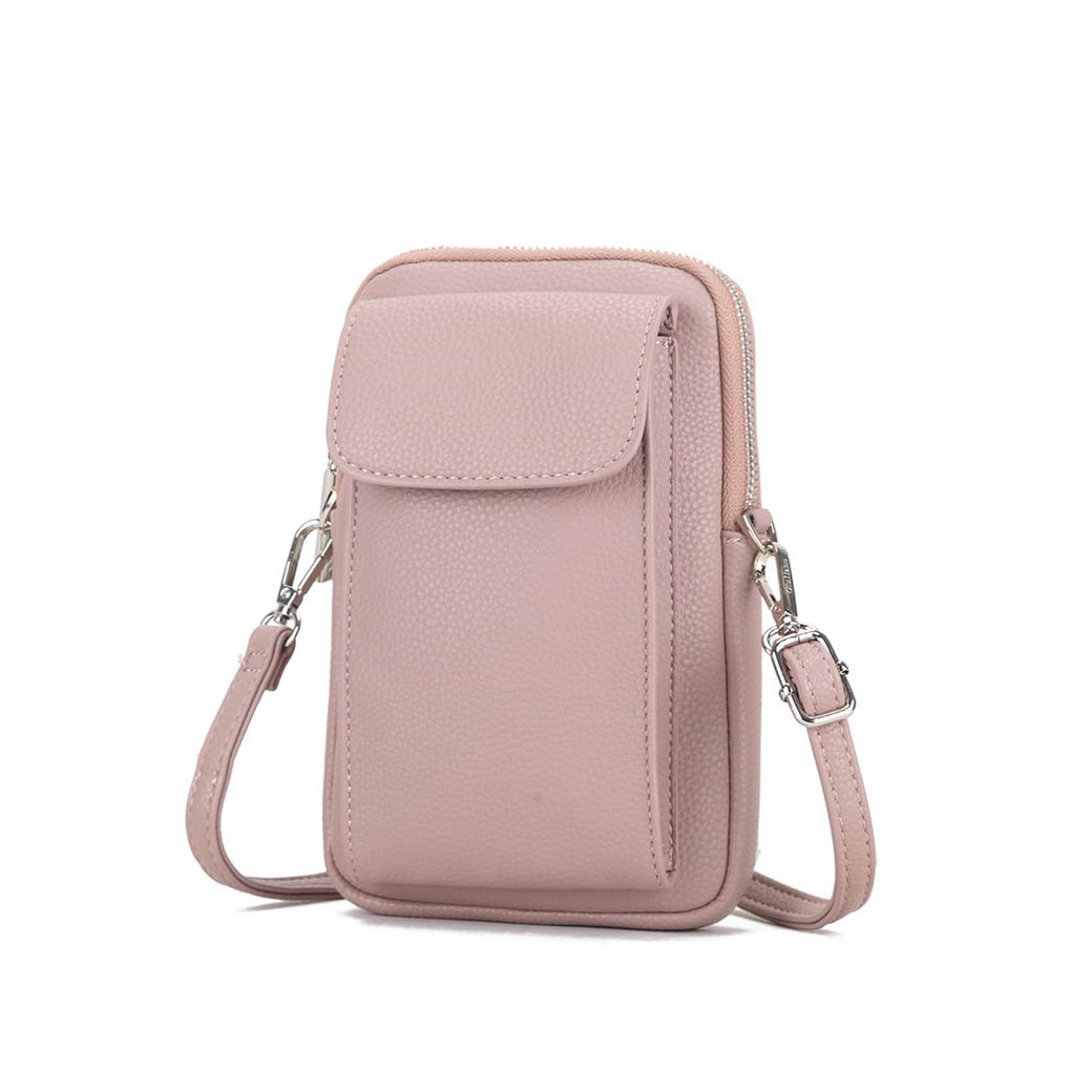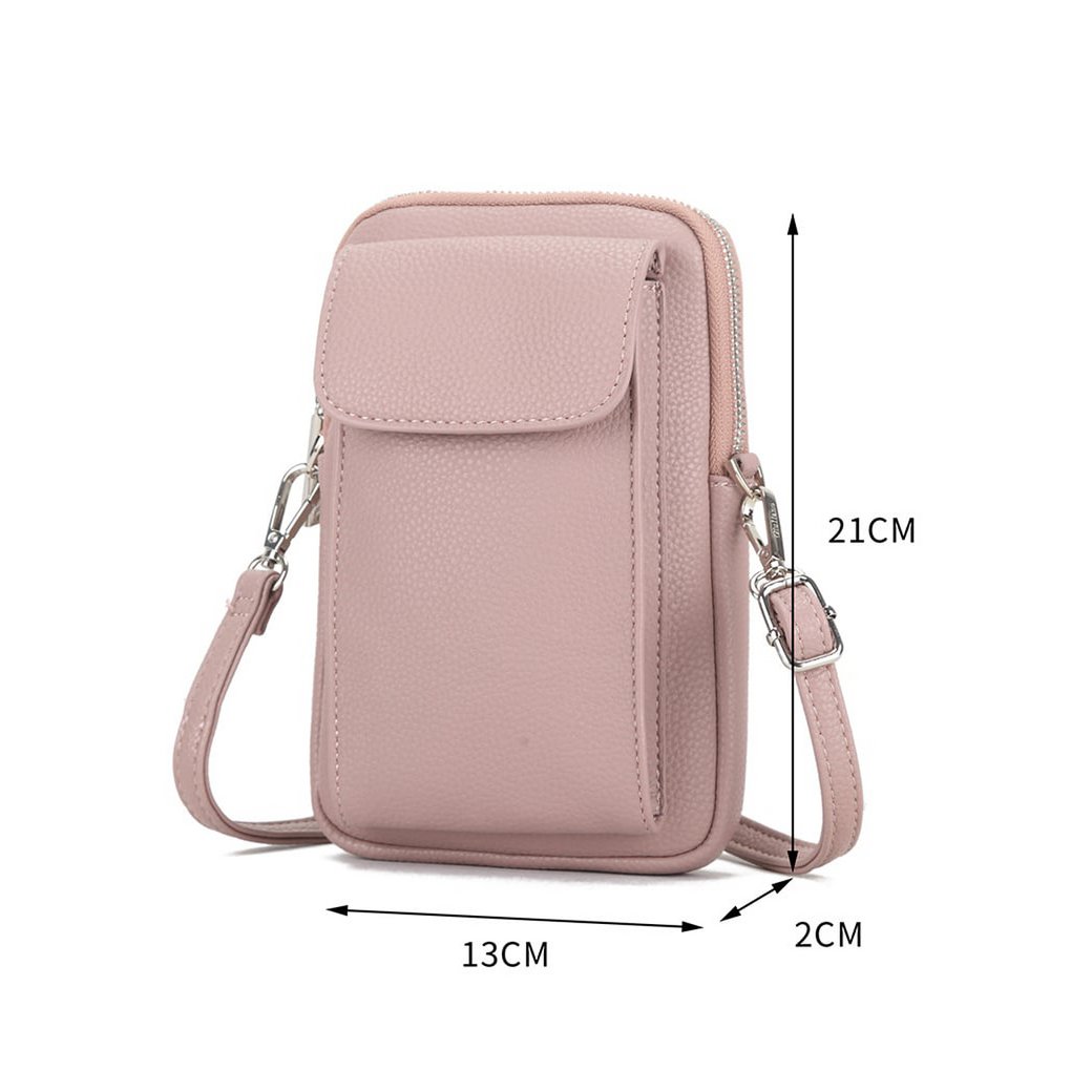 Materiaal : Kunstleer Sluiting : Ritssluiting Afmeting : 13 cm x 21 cm x 2 cm Voering : Ja Afwerking : Zilverkleurig metaal Schouderband : Ja, afneembaar en verstelbaar