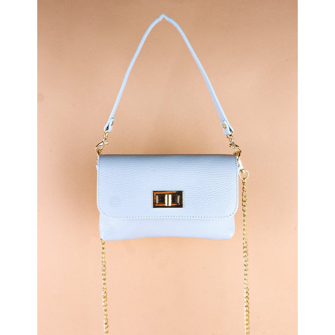 Materiaal : Leer Sluiting : Draaisluiting Afmeting : 19 cm x 13 cm x 2 cm Voering : Ja Afwerking : Goudkleurig metaal Schouderband : Ja afneembaar