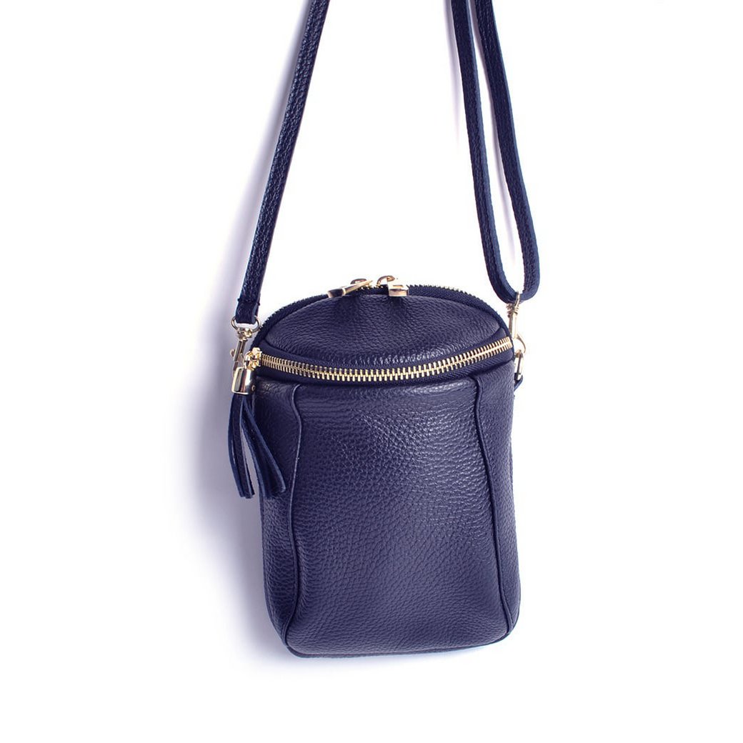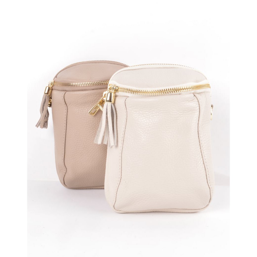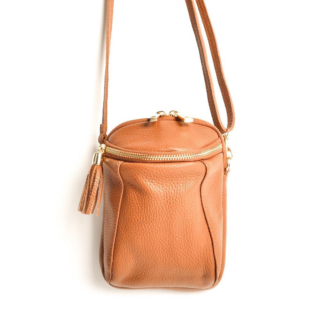 Materiaal : Leer Sluiting : Ritssluiting Afmeting : 13 cm x 22 cm x 3 cm Voering : Ja Afwerking : Goudkleurig metaal Schouderband : Ja, afneembaar en verstelbaar