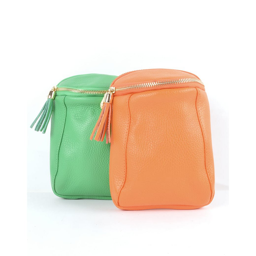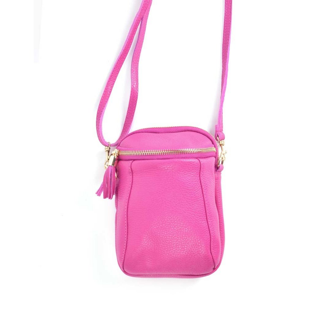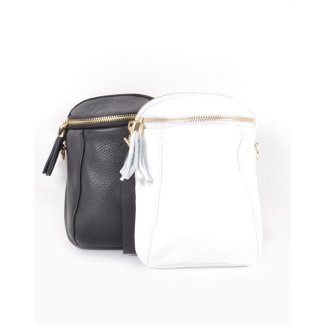 Materiaal : Leer Sluiting : Ritssluiting Afmeting : 13 cm x 22 cm x 3 cm Voering : Ja Afwerking : Goudkleurig metaal Schouderband : Ja, afneembaar en verstelbaar