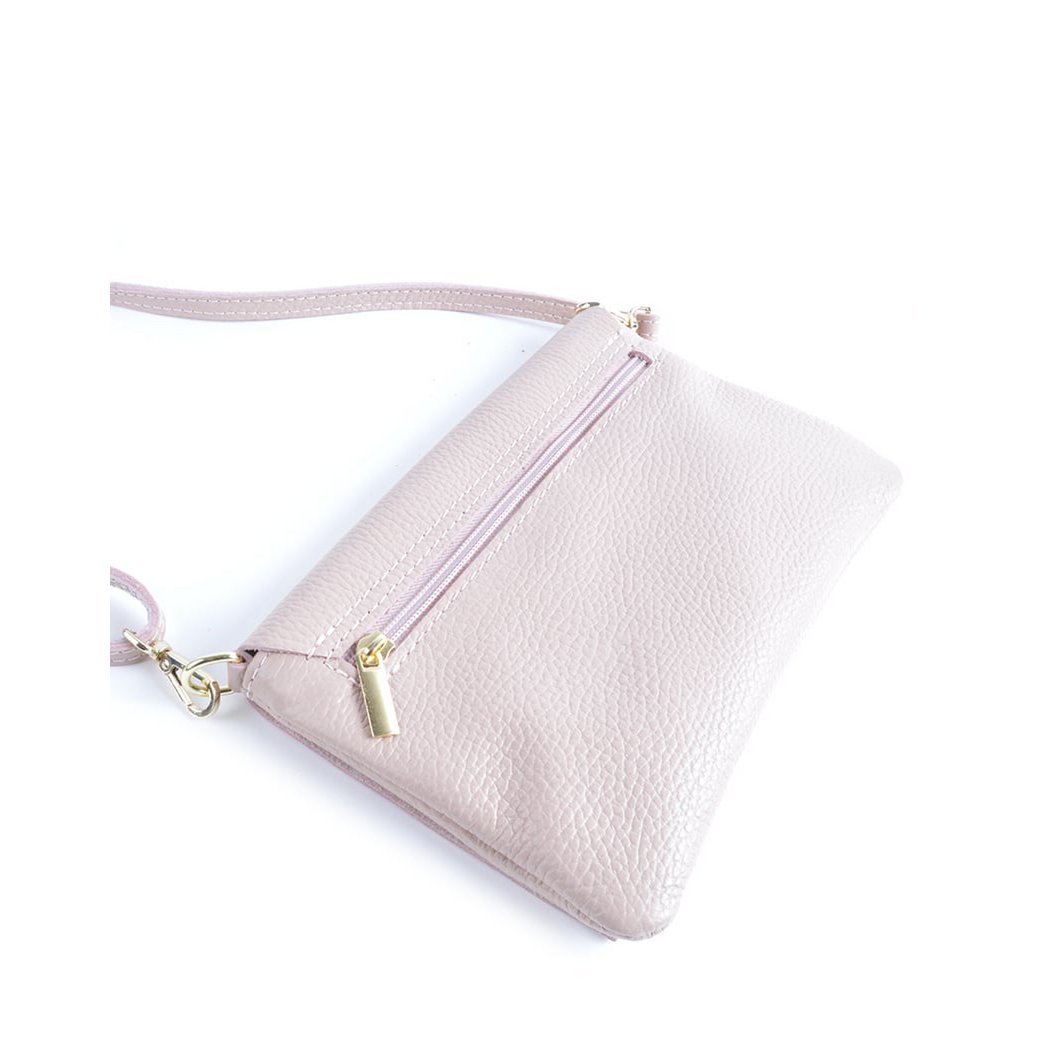 Materiaal : Leer Sluiting : Ritssluiting Afmeting : 22 cm x 14 cm x 4 cm Voering : Ja Afwerking : Goudkleurig metaal Schouderband : Ja, afneembaar en verstelbaar