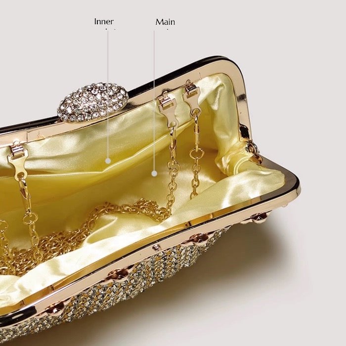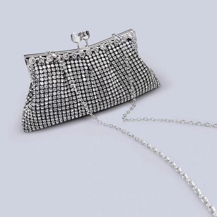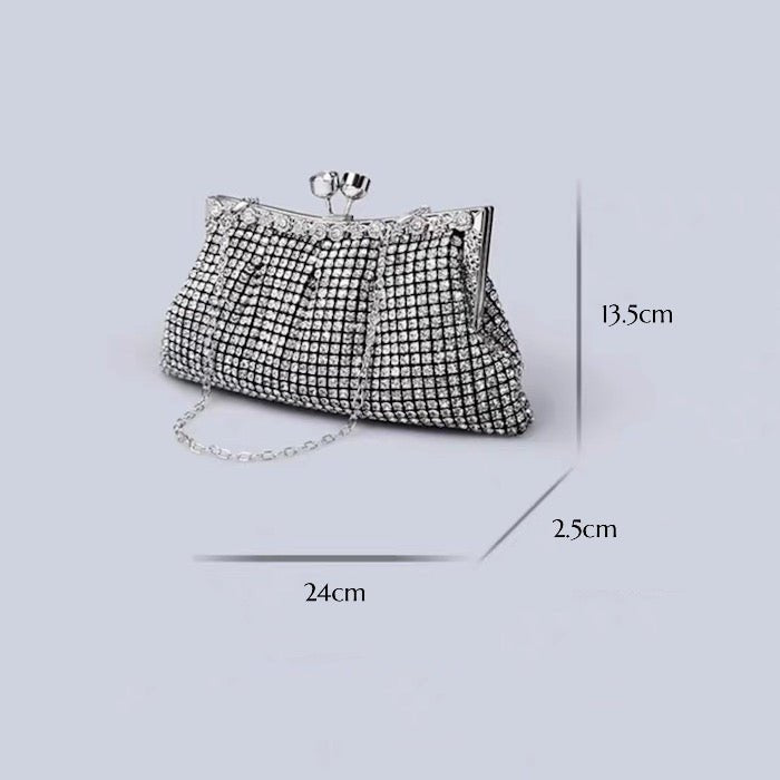 Deze oogverblindende handtas is ontworpen om een statement te maken met zijn blingbling-esthetiek, perfect voor feesten, evenementen of als prachtige bruidsclutch. Deze clutch is verkrijgbaar in zowel goud als zilver en biedt veelzijdigheid om elke outfit gemakkelijk aan te vullen. Deze clutch is gemaakt van hoogwaardig polyester versierd met een glinsterend net en straalt luxe uit, maar blijft licht van gewicht zodat je hem de hele nacht moeiteloos kunt dragen. Het ontwerp met diamantlook voegt een vleugje weelde toe, tilt uw look naar een hoger niveau en zorgt ervoor dat alle ogen op u gericht zijn.