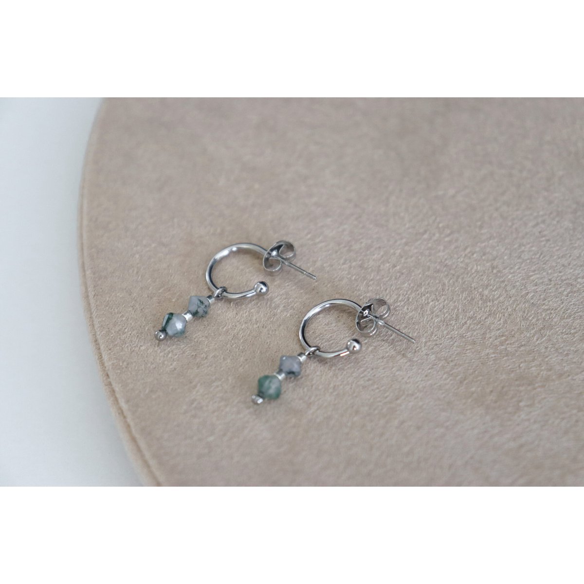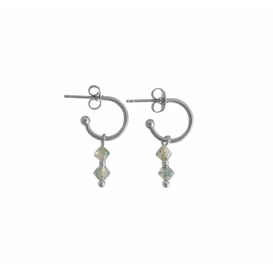 Mos Agaat oorringen, gemaakt van stainless steel. De Mos Agaat steentjes hebben een bijzondere vorm en zijn facet geslepen. De Mos Agaat oorringen zijn hypoallergeen, duurzaam, sterk en kleurvast.