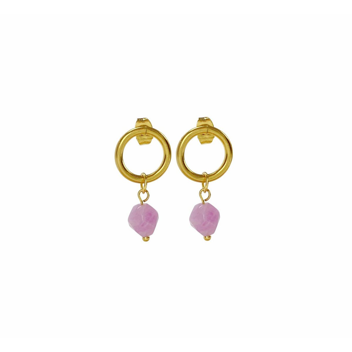 Stainless steel oorbellen met een Chalcedoon hangertje. De oorbellen hebben een oorsteker en een achterkantje. Het steentje is facet geslepen waardoor hij prachtig fonkelt.