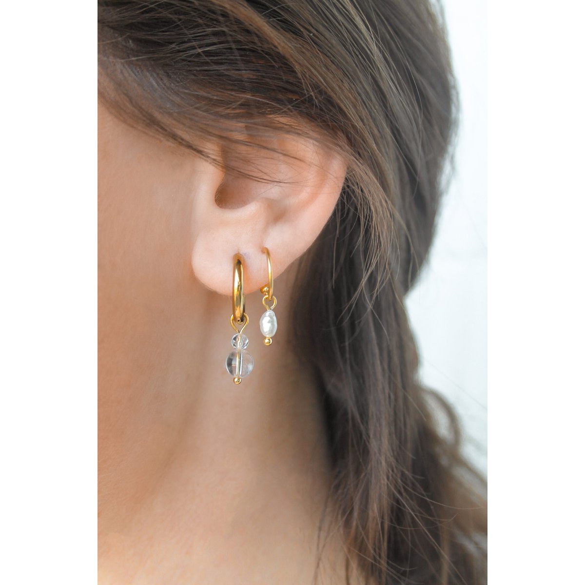 Oorringen Bergkristal - Goud