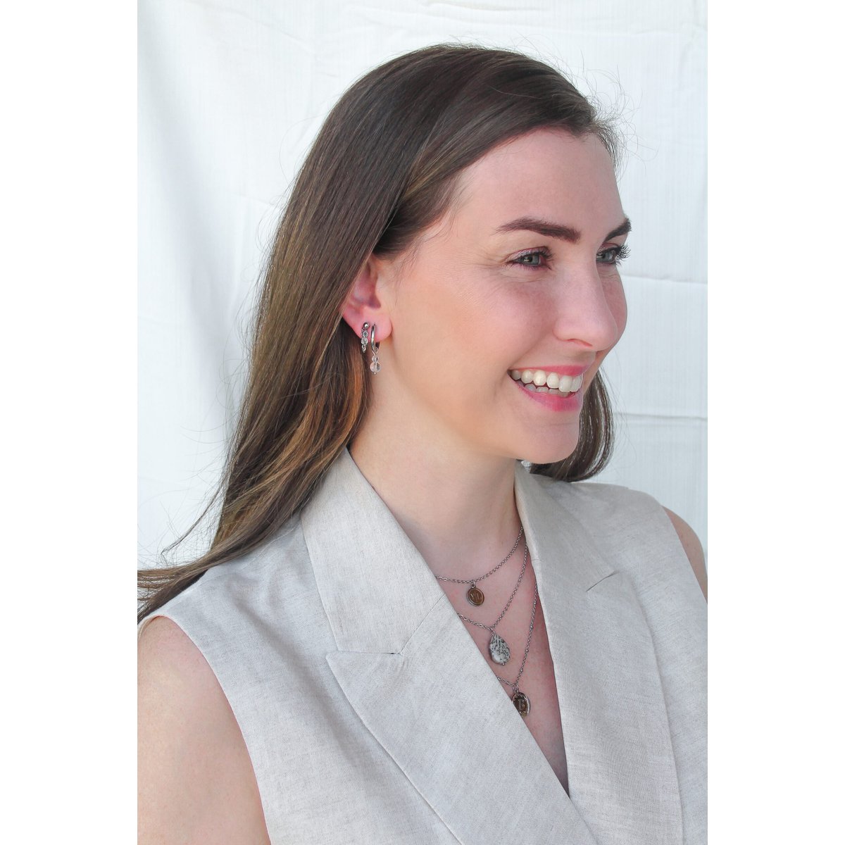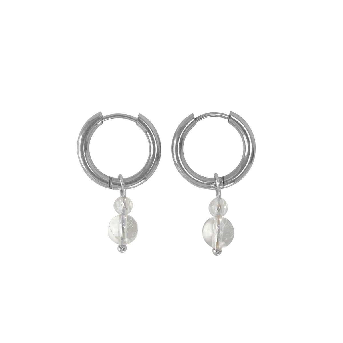 Stainless steel oorringen met twee Bergkristal steentjes.