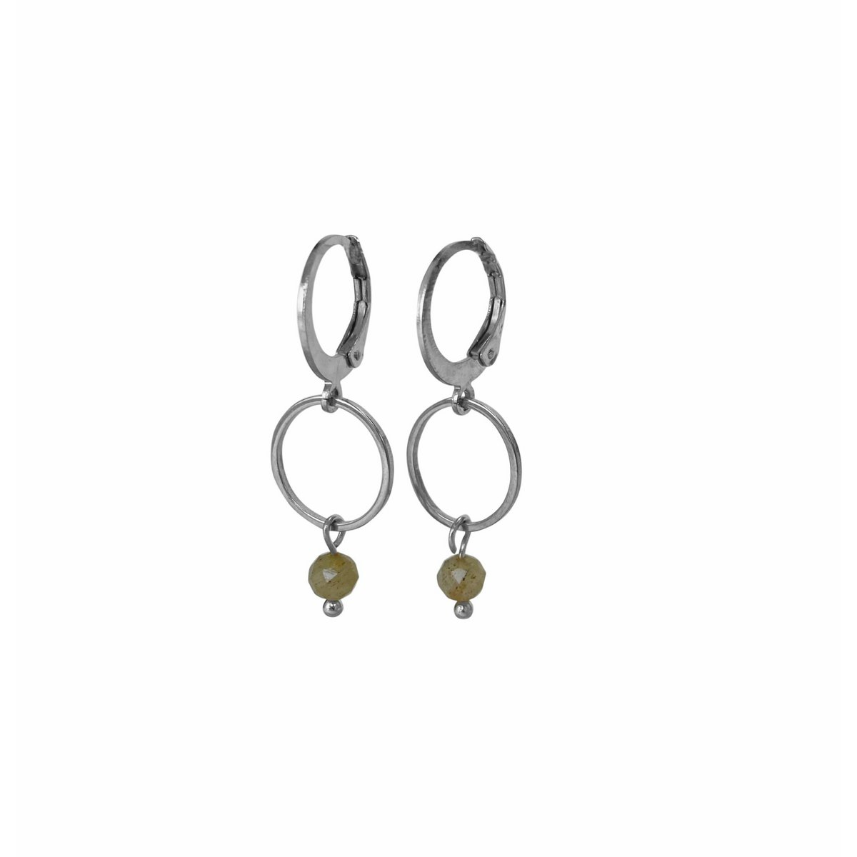 Stainless steel oorringen met een Labradoriet steentje. De oorring heeft een hefboompje, waardoor je de oorring gemakkelijk open en dicht kunt doen.