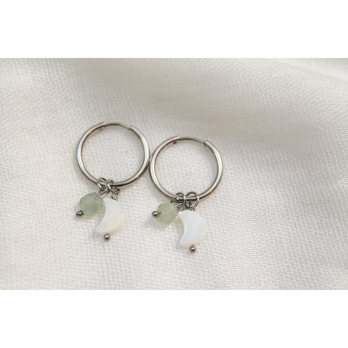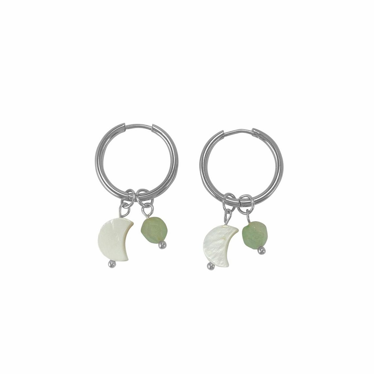 Oorringen Schelp Maantje & Aventurijn - Zilver