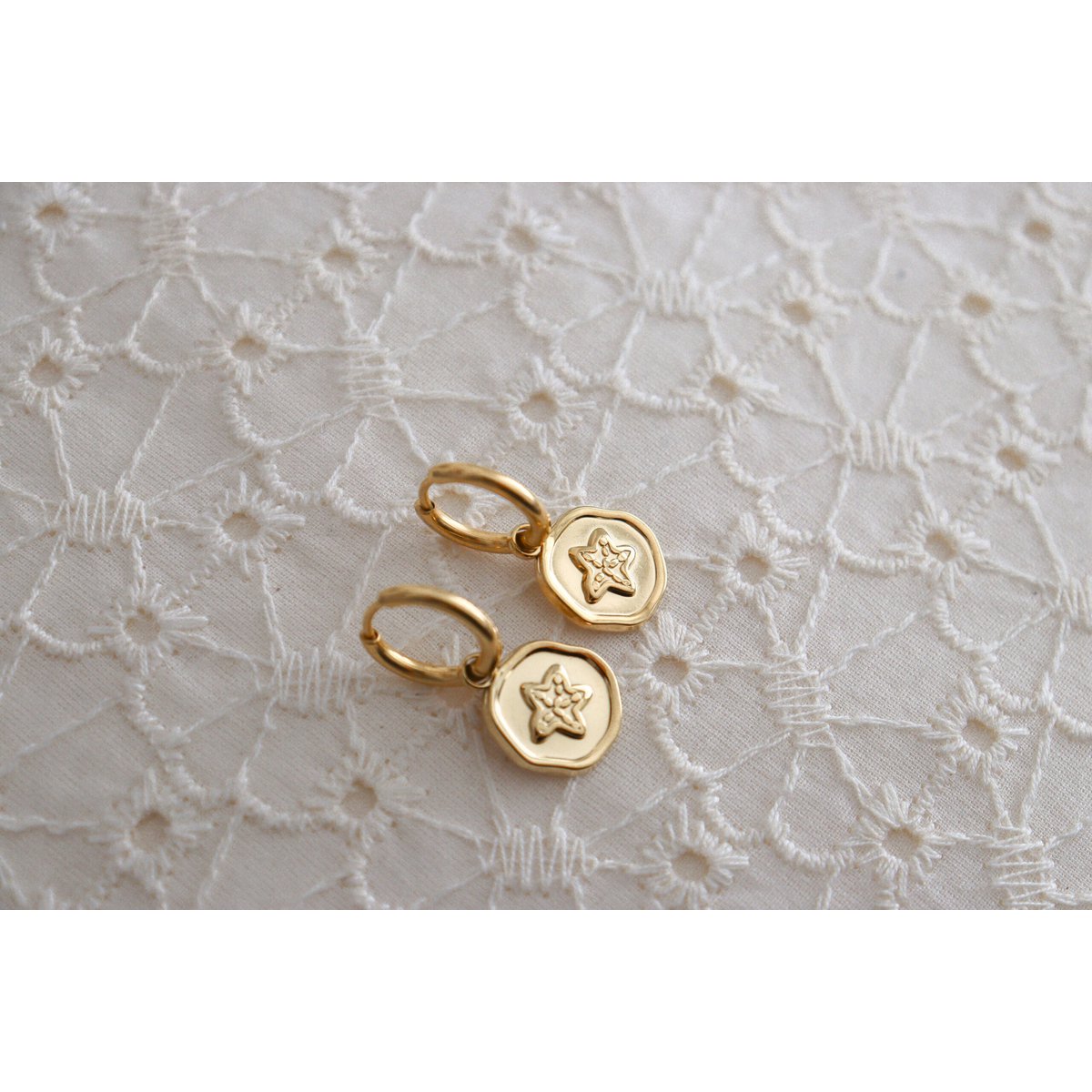 Oorringen Zeester, gemaakt van stainless steel. Het bedeltje heeft een abstracte vrije vorm, wat het een leuk effect geeft. Maak een mooi setje met de bijpassende ketting. De oorringen zijn hypoallergeen, sterk, duurzaam, sterk en betaalbaar.