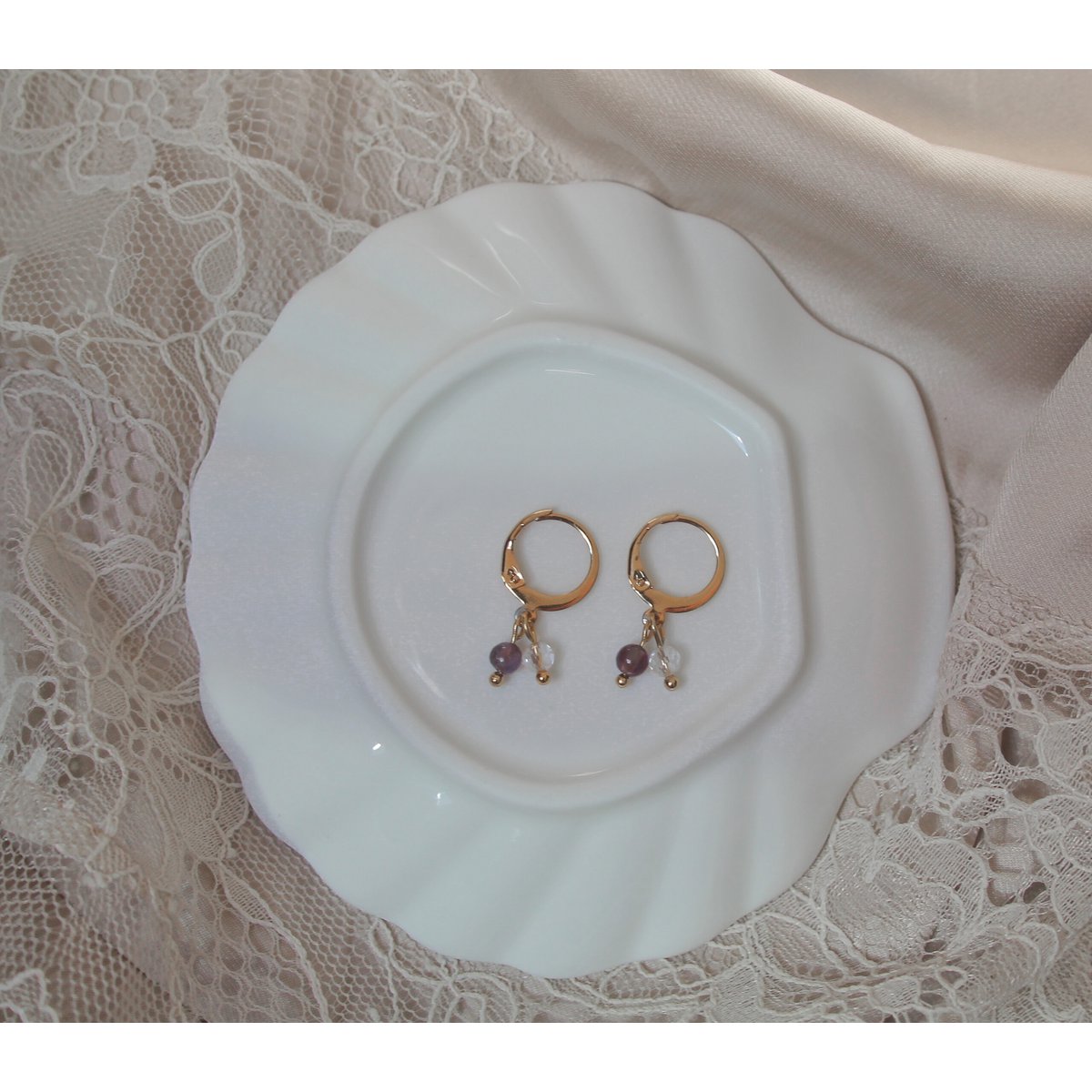 Oorringetjes Amethist & Bergkristal - Goud