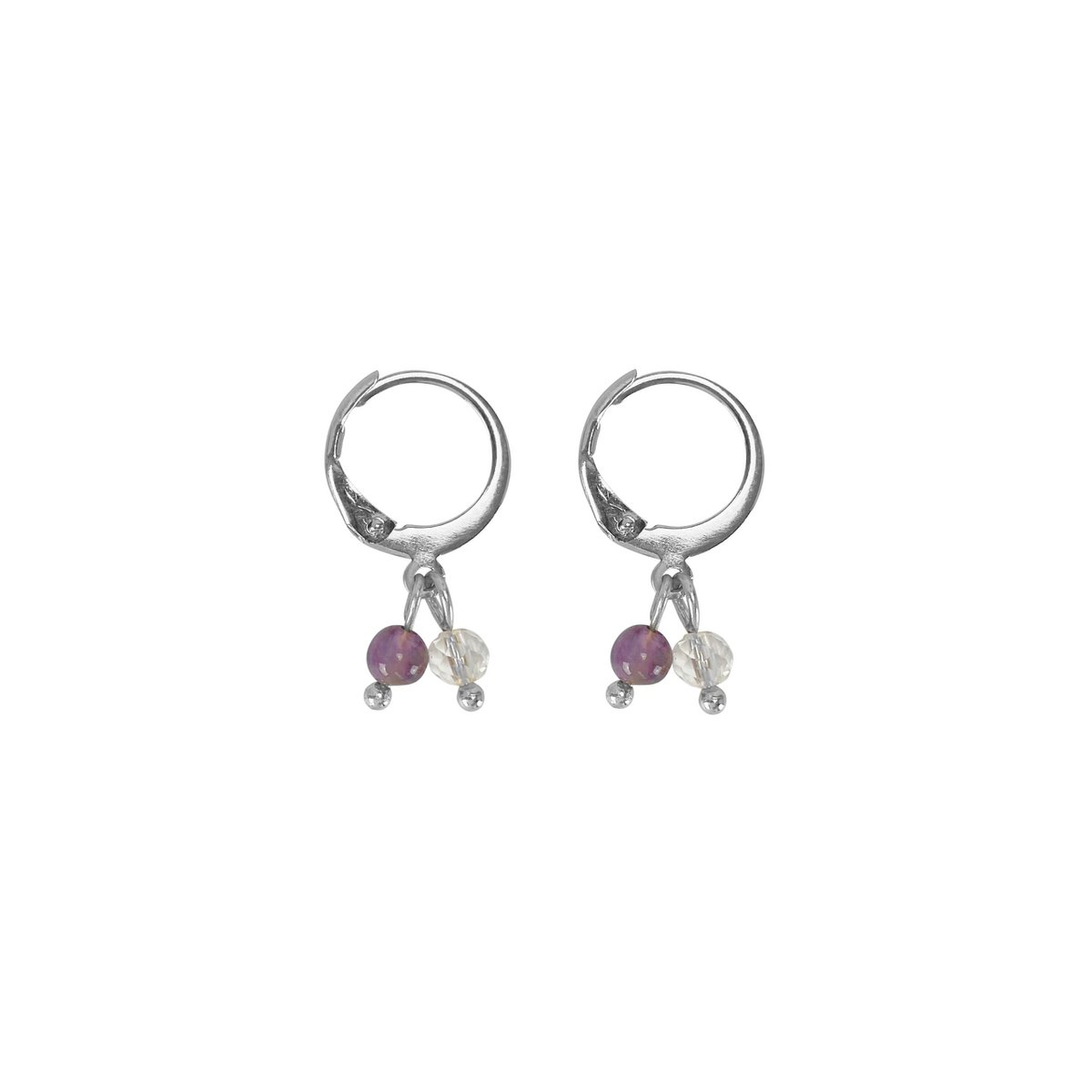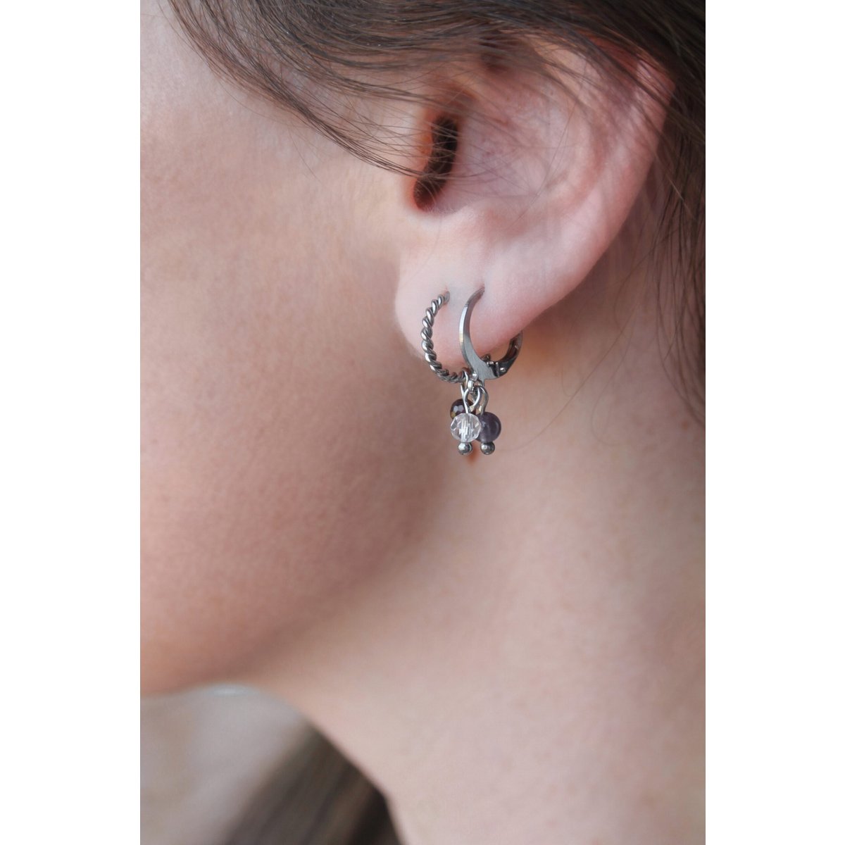 Stainless steel oorringetjes met Amethist & Bergkristal.