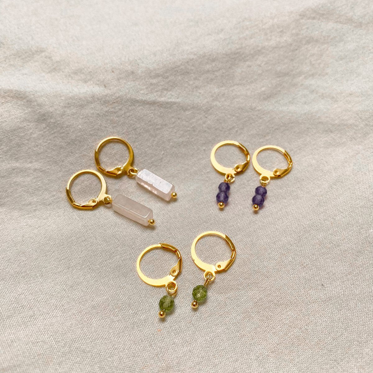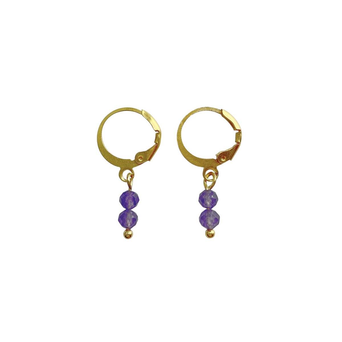 Stainless steel oorringetjes met twee Amethist facet steentjes.
