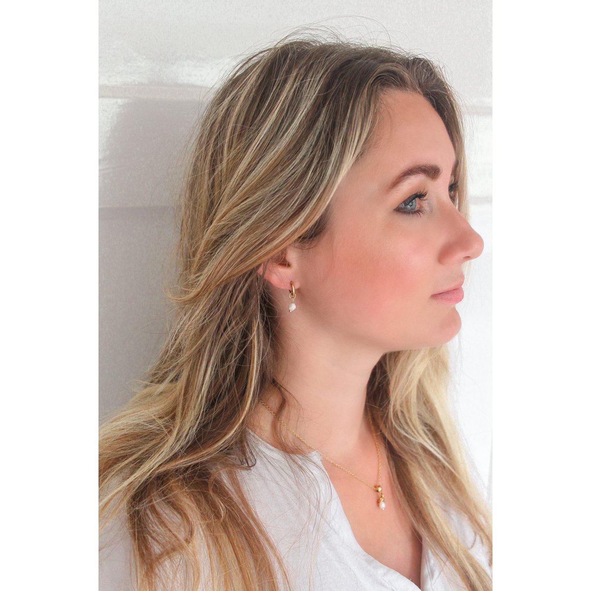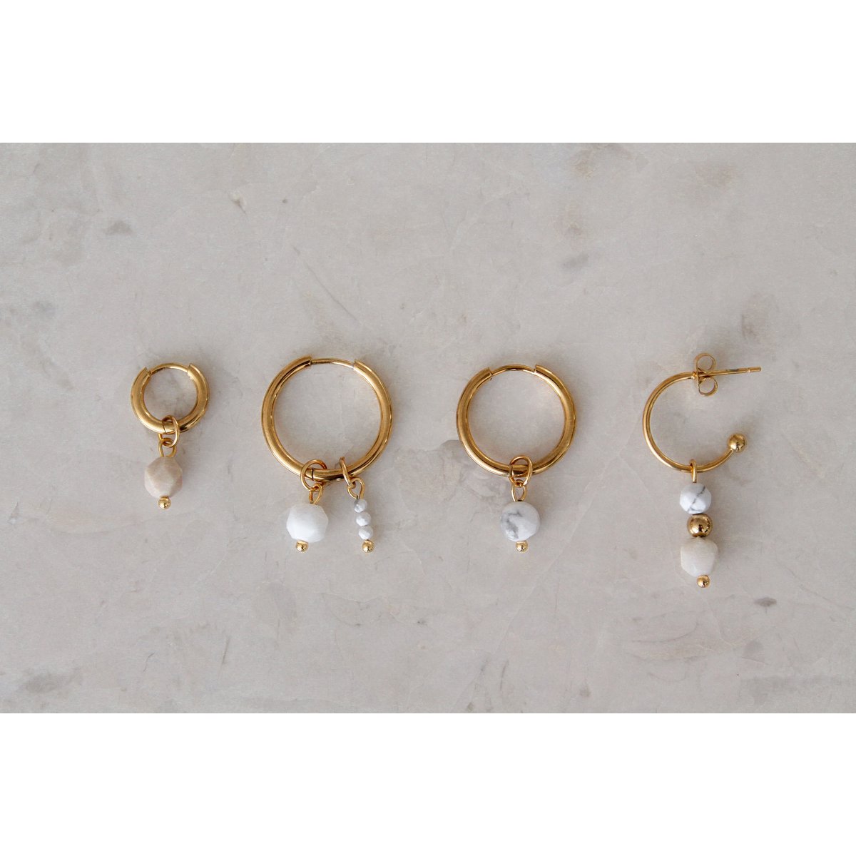 Stainless steel oorringetjes met een facet geslepen beige Jade steentje.