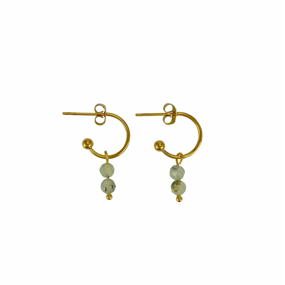 Stainless steel oorringetjes met Prehniet steentjes. Prehniet is een zachte en rustgevende steen.