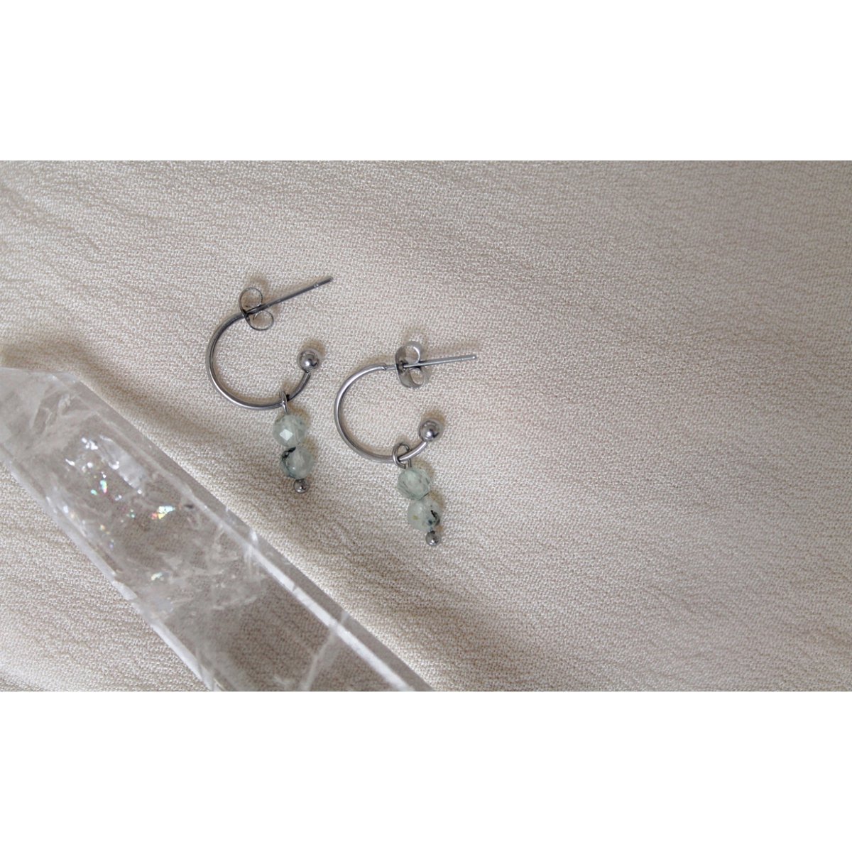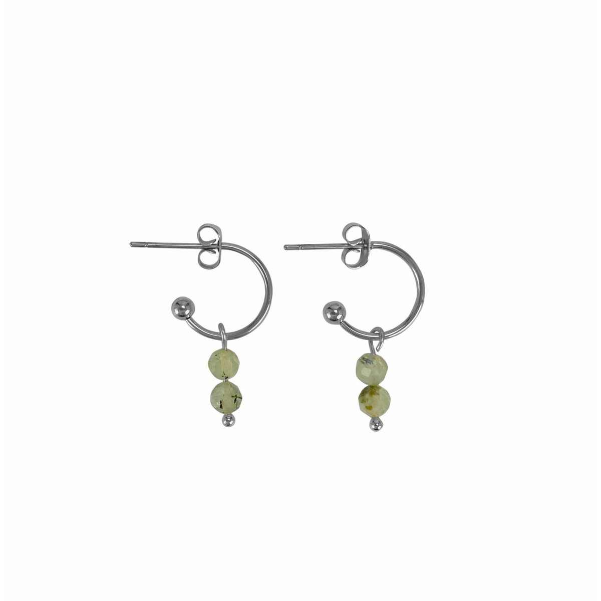 Stainless steel oorringetjes met Prehniet steentjes. Prehniet is een zachte en rustgevende steen.