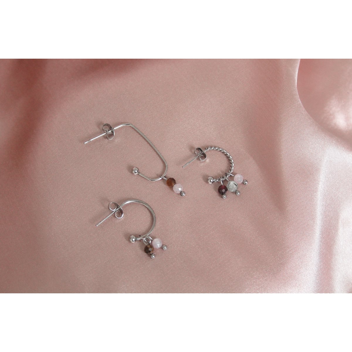 Oorringetjes Tijgeroog & Kunziet - Zilver