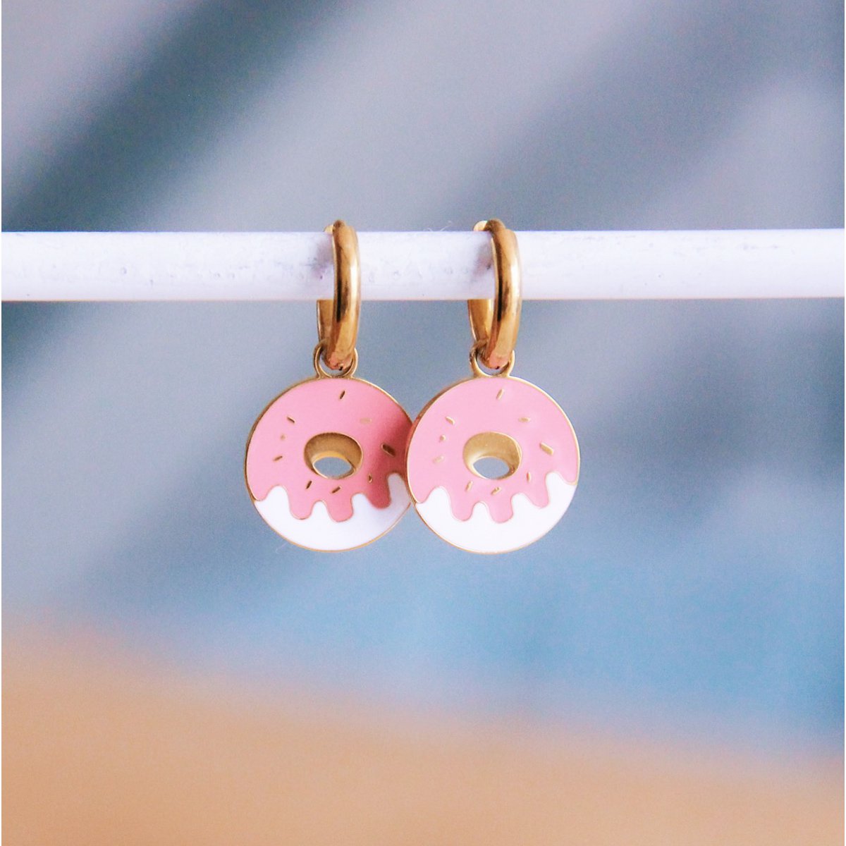 Roestvrijstalen hoepel oorbellen met donut - roze