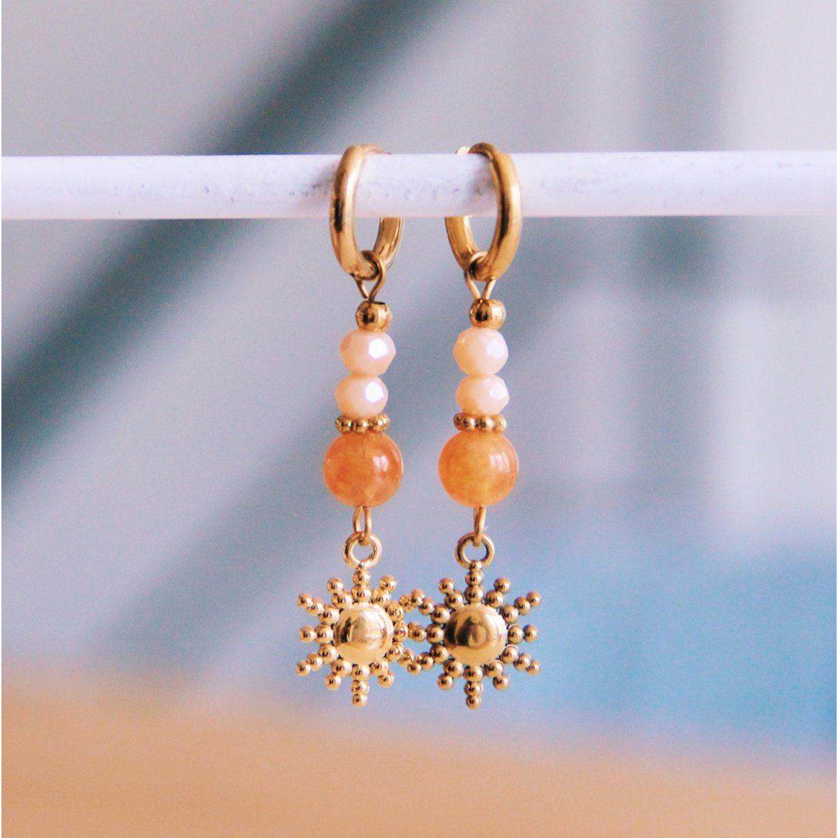 Roestvrijstalen hoepel oorbellen met facet, edelsteen en zon - naakt/oranje