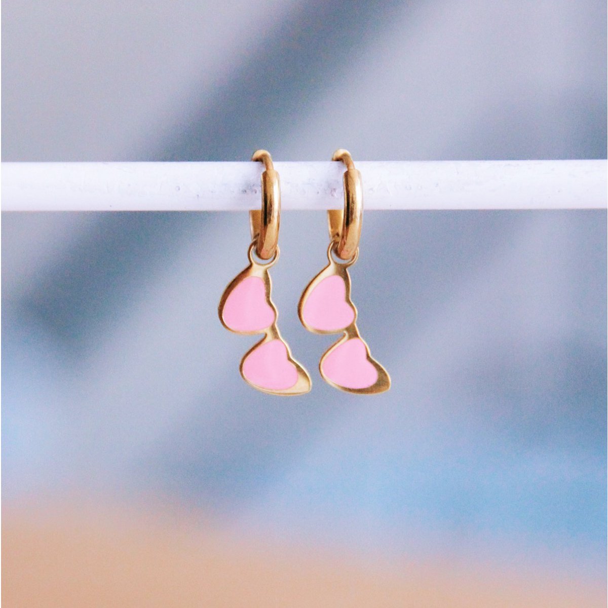 Roestvrijstalen hoepel oorbellen met zonnebrillen - roze