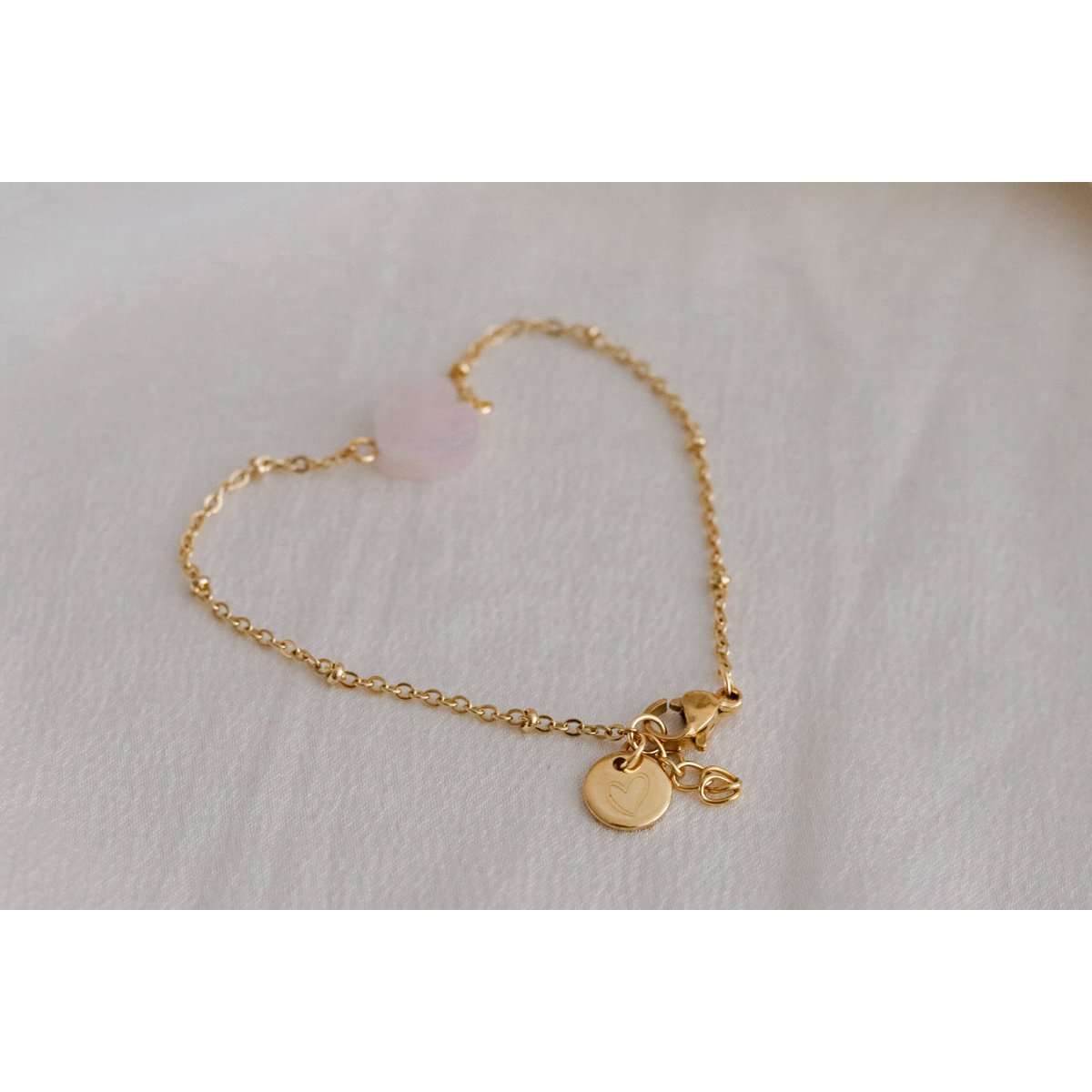 Rozenkwarts hart armband met een bedeltje met een hartje er op gegraveerd. De Rozenkwarts & Hart Bedel armband is gemaakt van stainless steel en is sterk, duurzaam, kleurvast en hypoallergeen. Het is een mooi armbandje om te dragen met iemand samen, om te geven met Moederdag, Valentijnsdag of om iemand een hart onder de riem te steken. Ook kun je de armband zelf dragen als je het gevoel hebt jezelf wat extra liefde te mogen geven.
