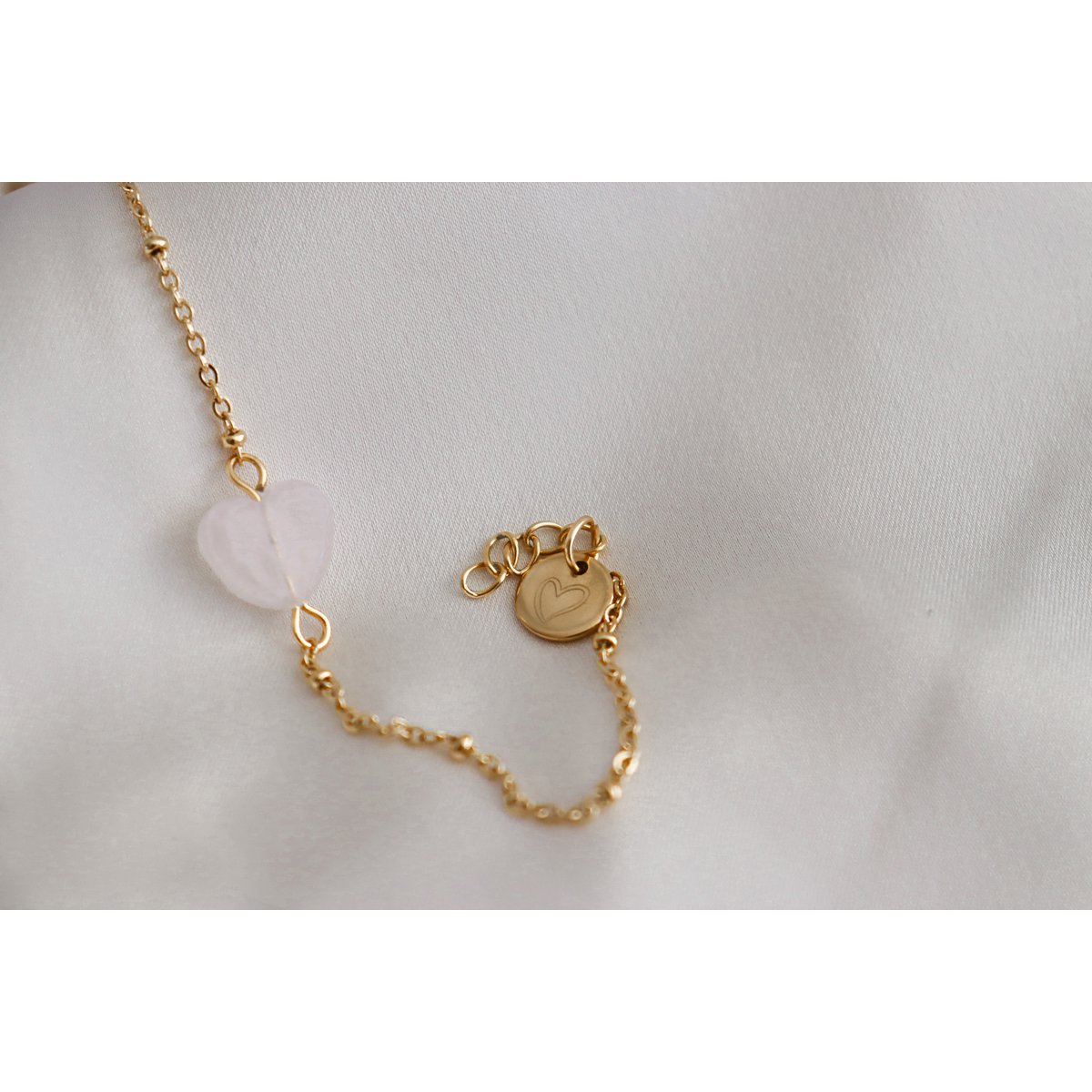 Rozenkwarts Hart Armband & Hart Bedel - Goud