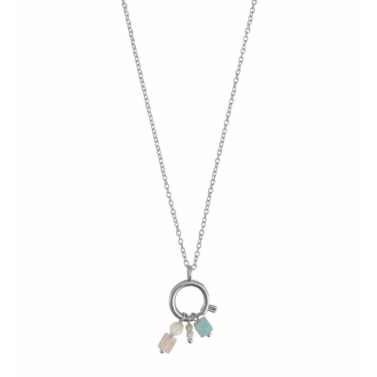 Slot Ketting 14 mm & Edelsteen Hangertjes - Zilver